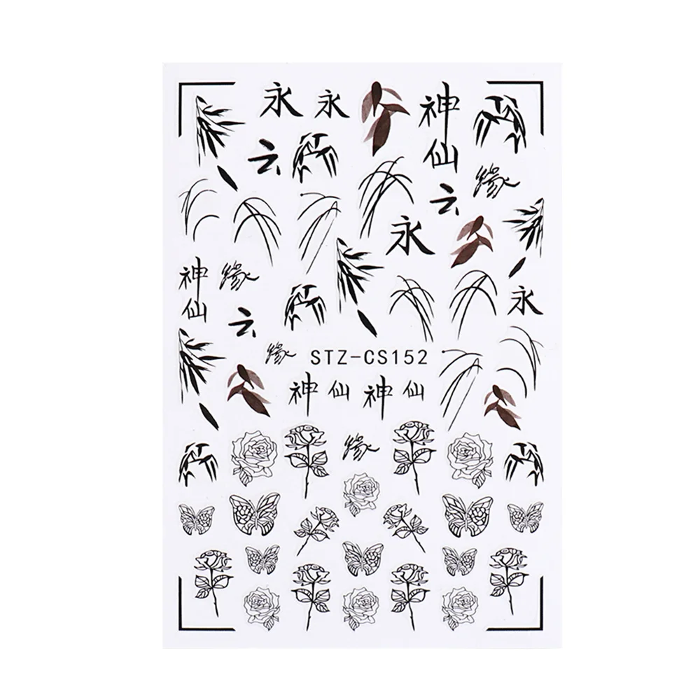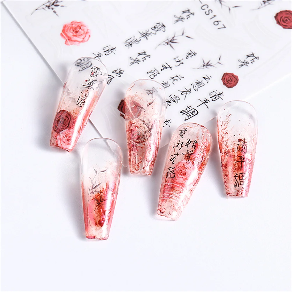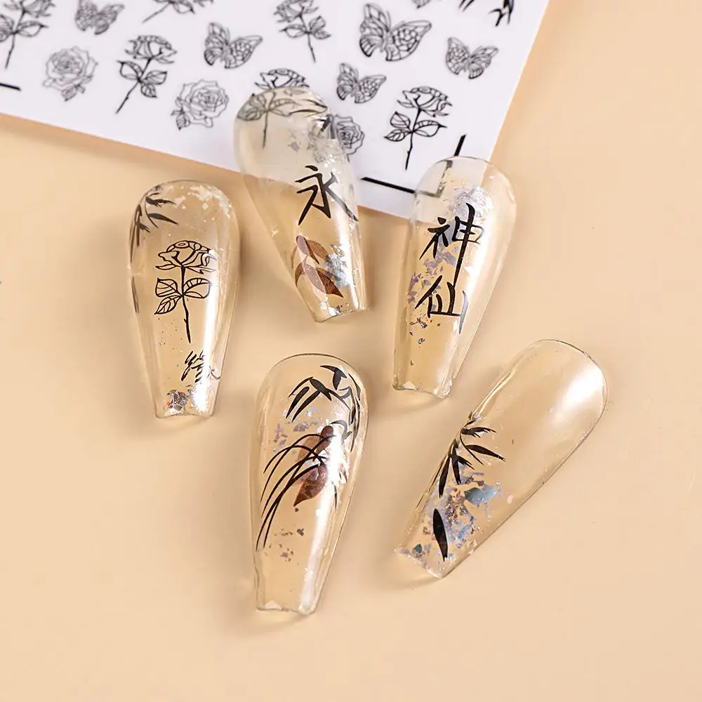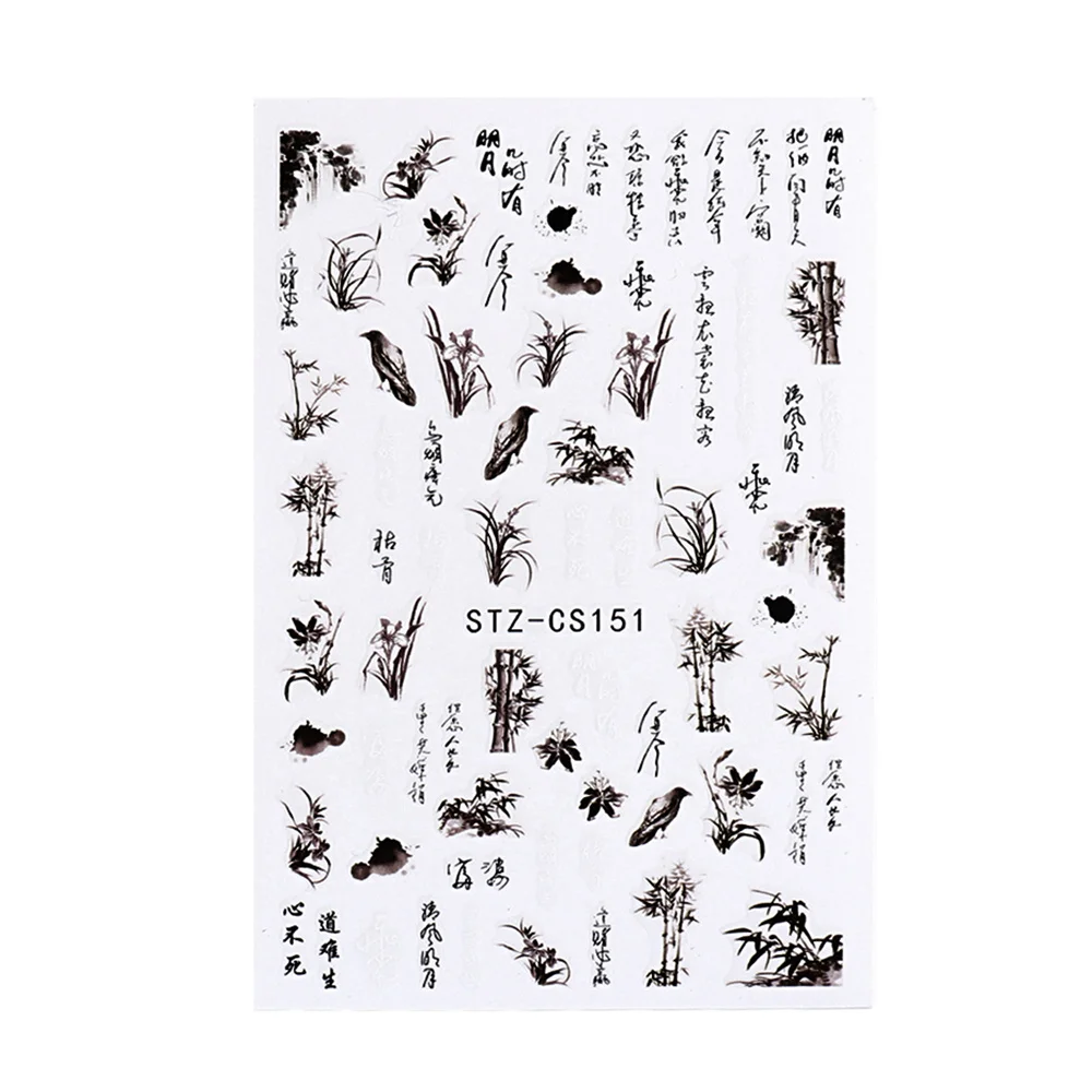 Manicura Poema tradicional Sello de China Pegatinas Calcomanías de calcomanía antigua Palabras en inglés Uñas Adorno Deslizadores 2017