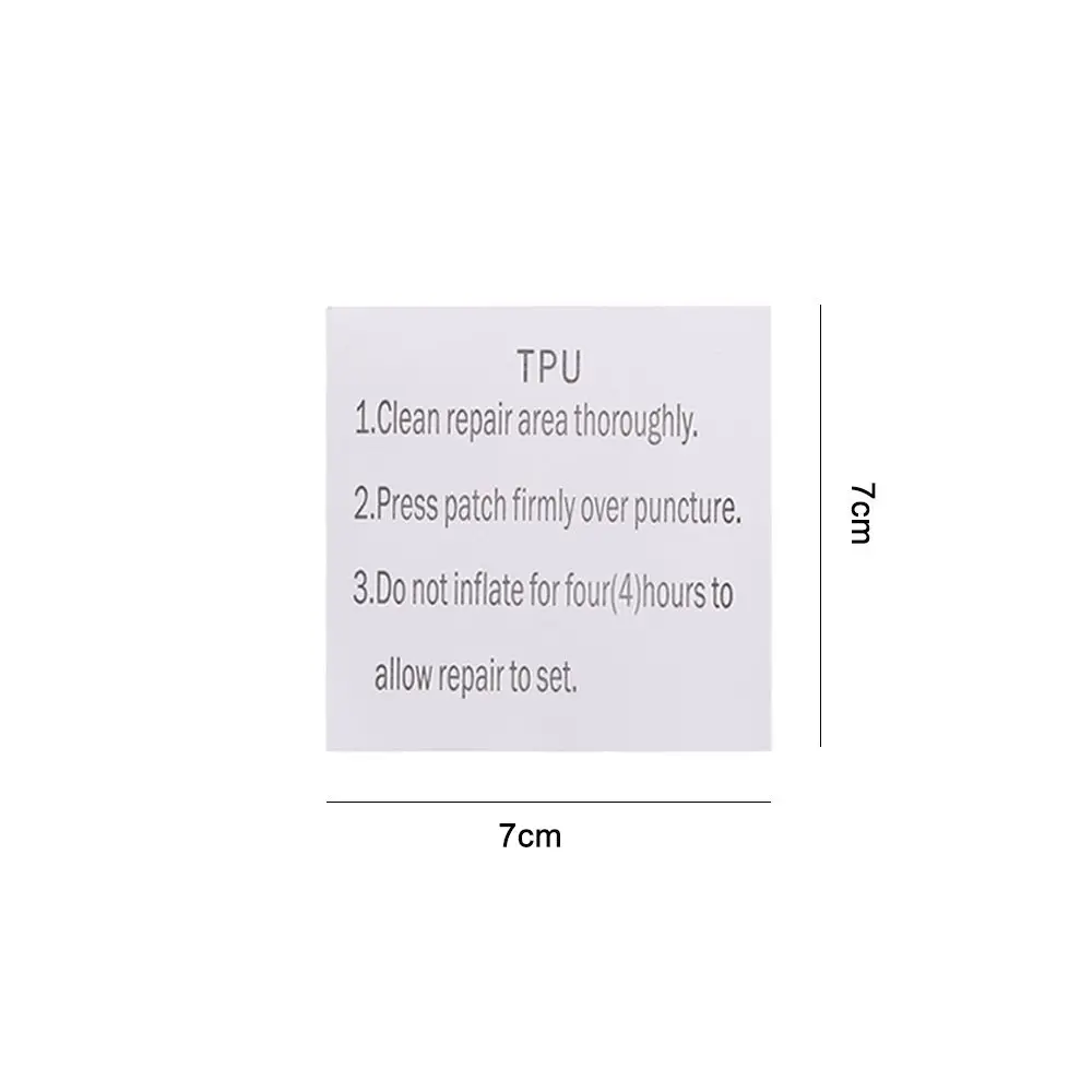 Brand new with high quality Color: translucent Material: TPU Size: 7 x 7cm/2.76 x 2.76" Quantity:1/2/4/5pcs(as your choose) Features: 1.To repair inflatable boats, suitable for all types of high-value inflatable products, such as air mattresses, inflatable boats, trampolines, inflatable sofas, swimming rings, beach balls, etc. 2.Can also be used to repair or bond a variety of materials, including PVC, nylon, canvas, artificial leather, rubber, all kinds of plastic, metal, glass and so on. Repair step: 1. Clean the surface near the slits or holes and keep them dry. 2. Peel off the paper and directly attach the patch to the hole, cover it fully, and press it to make it stick firmly. 3. The repair is finished after 20-30 minutes, and it will solidify completely after 24 hours. Package Include: 1/2/4/5pcs Nylon Sticker Cloth Patches(as your choose) Notice: 1.1cm=10mm=0.39 inch 2.Please allow 1-2mm error due to manual measurement and make sure you do not mind before ordering. 3.Please understand that colors may exist chromatic aberration as the different placement of pictures.