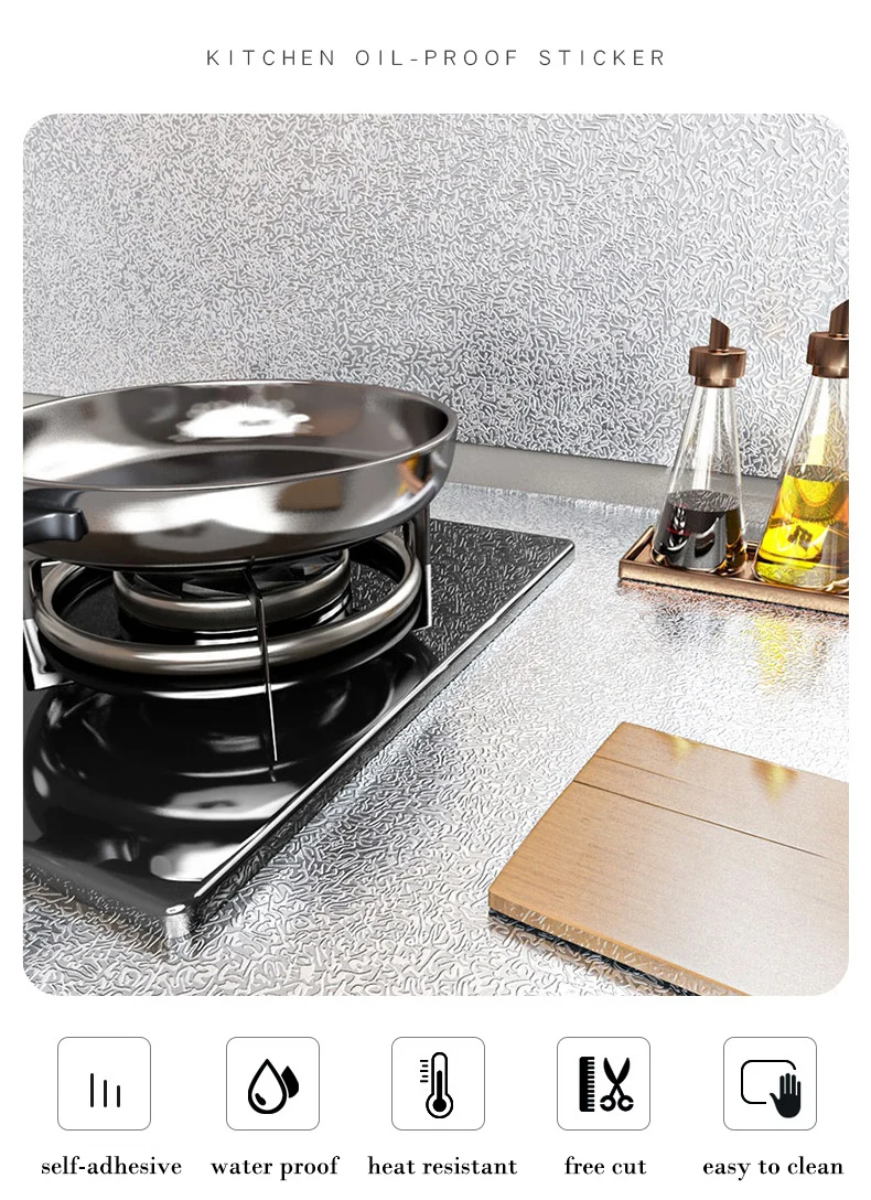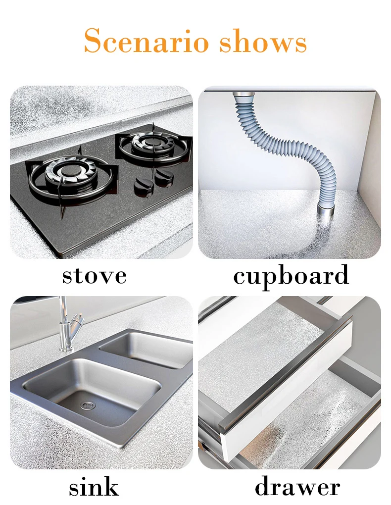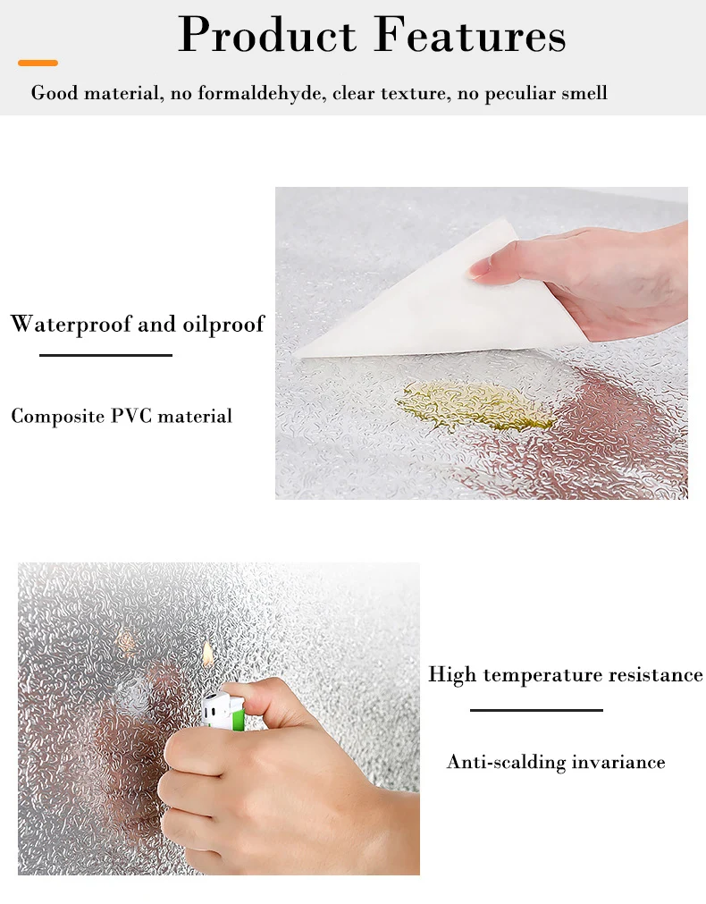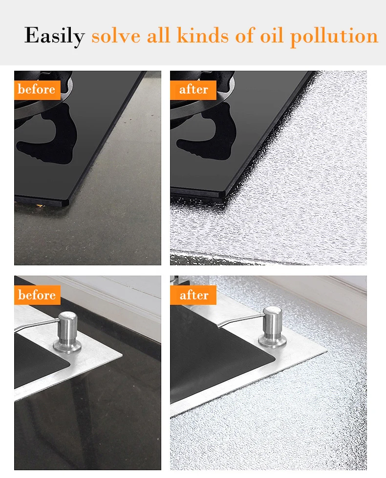 Resistente al aceite, al polvo y al agua: hecho de plástico y papel de aluminio, el rendimiento ignífugo es muy superior al de las láminas de PVC comunes.Resistente al calor y a la humedad, ¡las manchas se pueden eliminar con una sola toallita!
