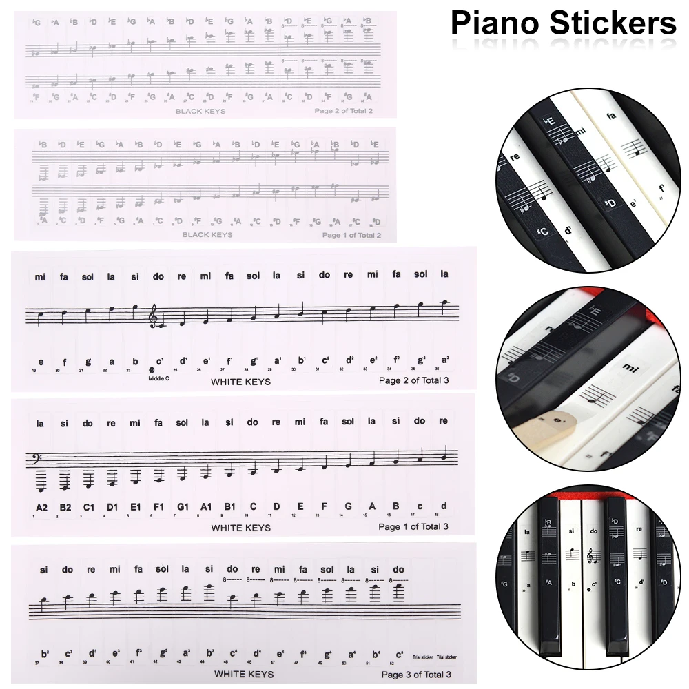 Pegatinas de Piano de 32/37/54/61/88 teclas, transparente, PVC, teclado de Piano, Stave, teclado electrónico, nombre, nota, pegatina, accesorios