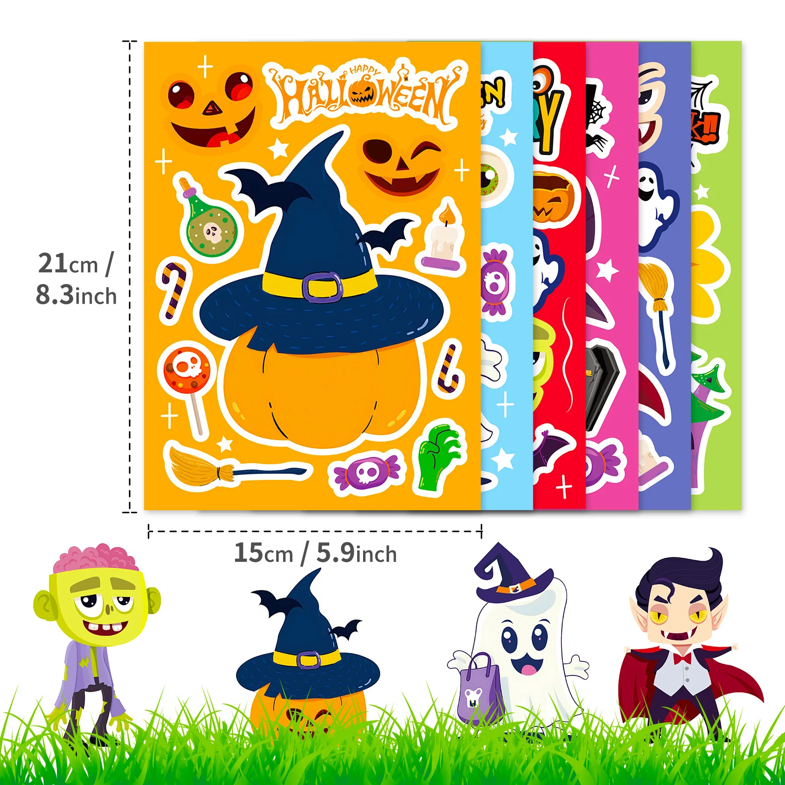 Pegatinas de rompecabezas de Halloween para niños, 6 hojas, juegos de pegatinas de rompecabezas de bricolaje, 6 lindos, fantasma, vampiro, hacer una cara, divertido, ensamblar, juguetes educativos