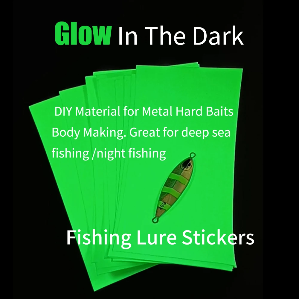 10 Uds. 20x10cm pegatinas luminosas para Señuelos de Pesca, Material adhesivo DIY para pesca en aguas profundas/nocturna, fabricación de cebos duros de Metal