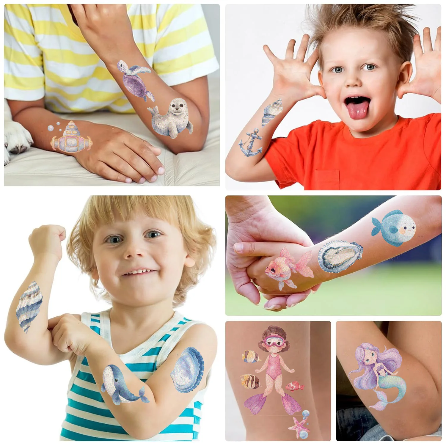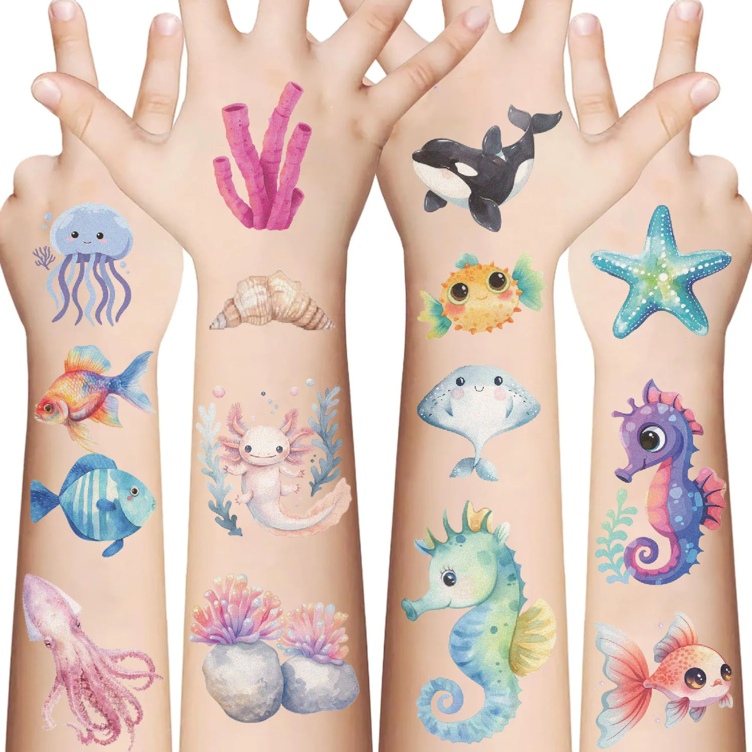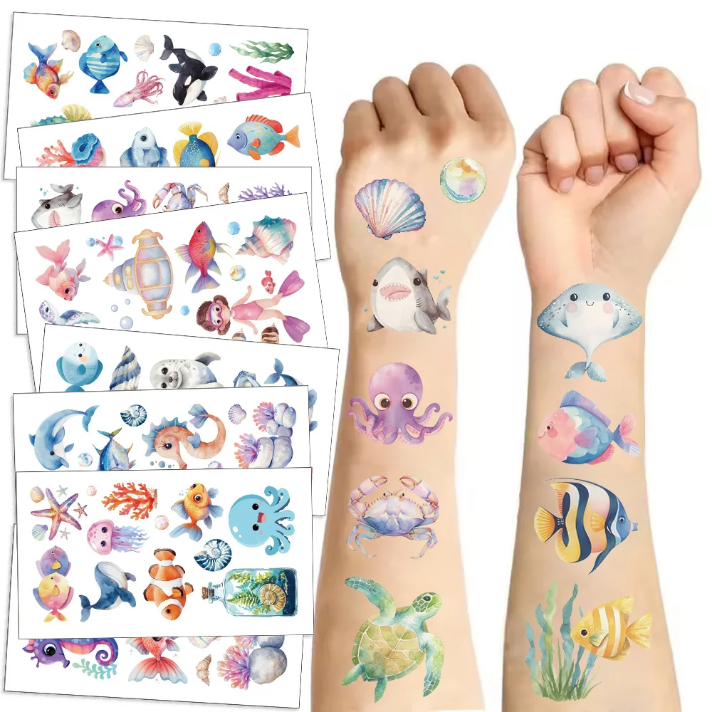 Pegatinas de tatuaje de animales marinos para niños, tatuajes falsos temporales, brazo, manos, cuerpo, juguete de regalo, 10 hojas