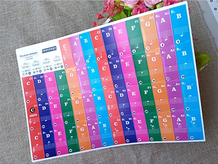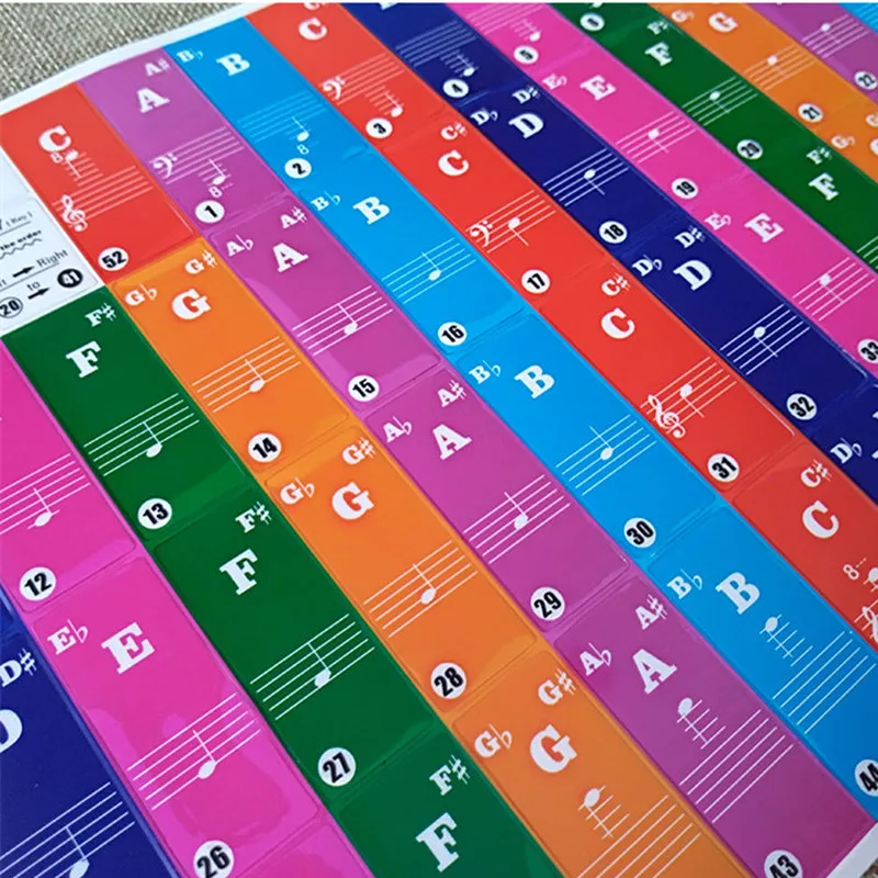 Pegatinas de Teclado de Piano transparentes coloridas, teclado electrónico, nombre de sonido, símbolo de nota pegatina de, 37/49/61/88 teclas, nuevo