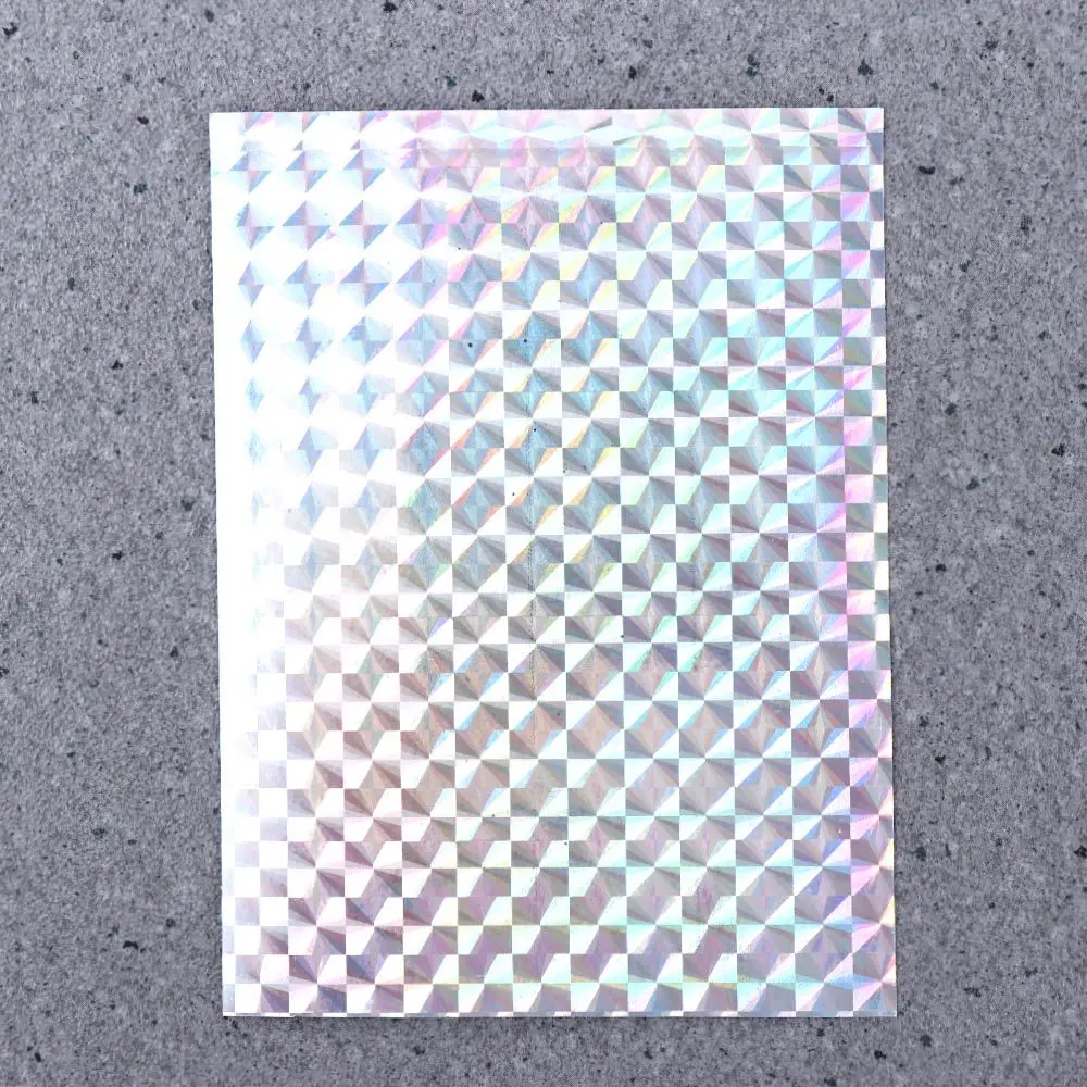 Cinta de película holográfica para la fabricación de señuelos, atado de moscas, cebos duros de metal que cambian de color Tamaño de la pegatina: aproximadamente 7,3*10cm/espesor de la hoja: 0,05mm Material : PVC Colores: puntas plateadas/verdes/doradas/moradas/Rojas/azules: película con adhesivo, para fijarla en señuelos para moscas, Úselo con pegamento o barniz. Paquete incluido: 2 hojas/bolsa