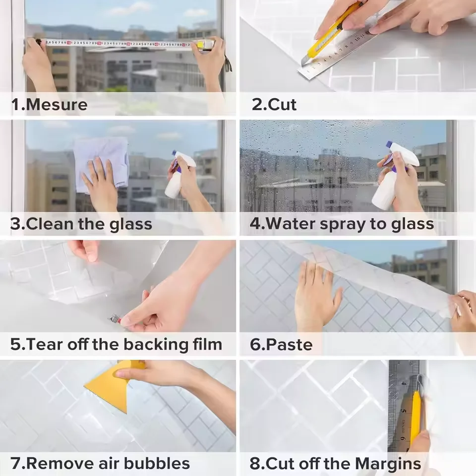 1.Material de PVC: nuestras pegatinas de vidrio están hechas de material de PVC,