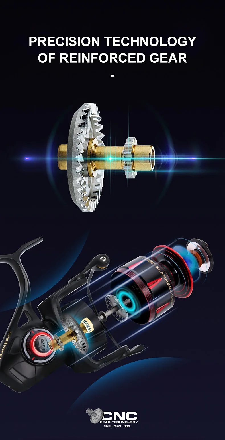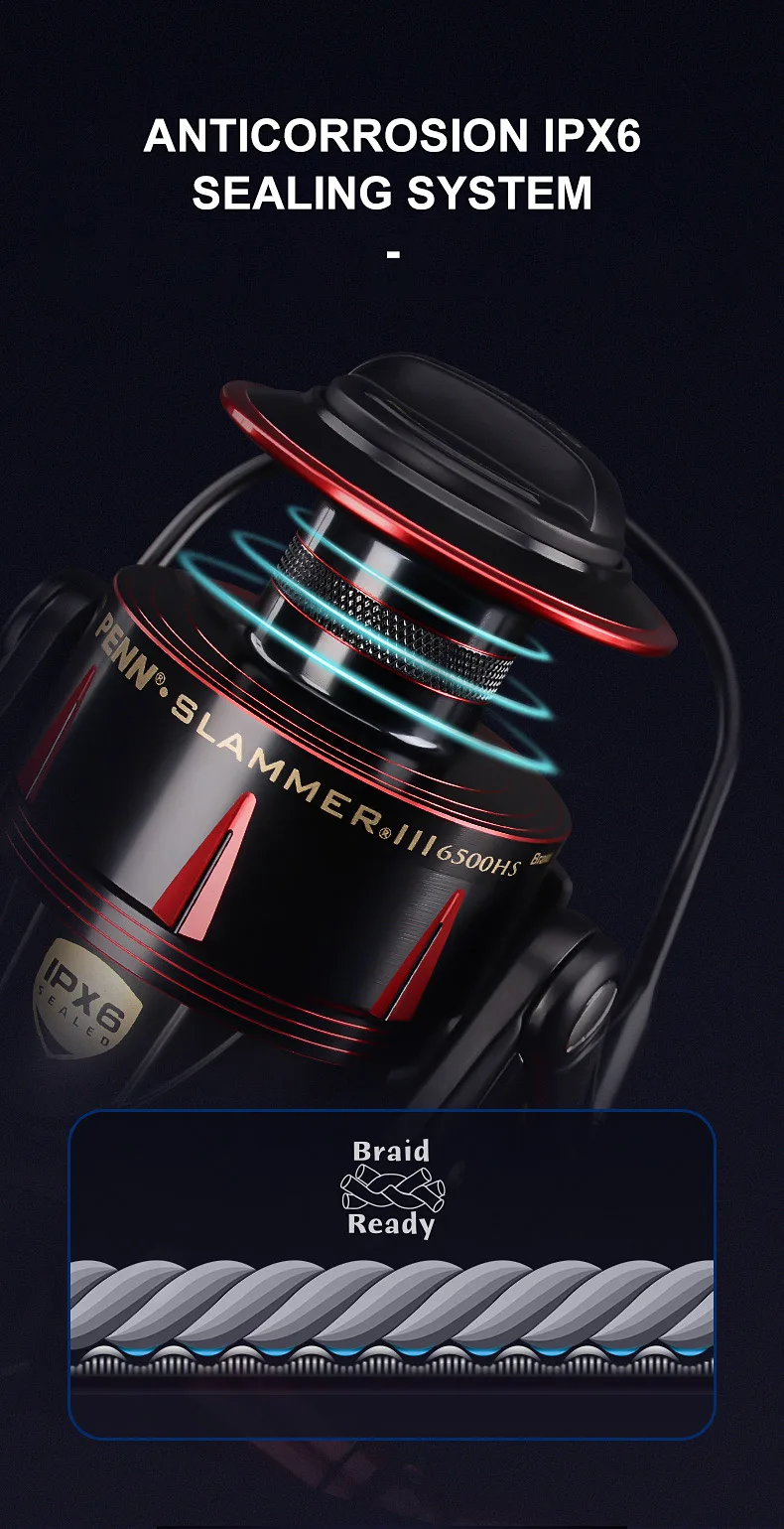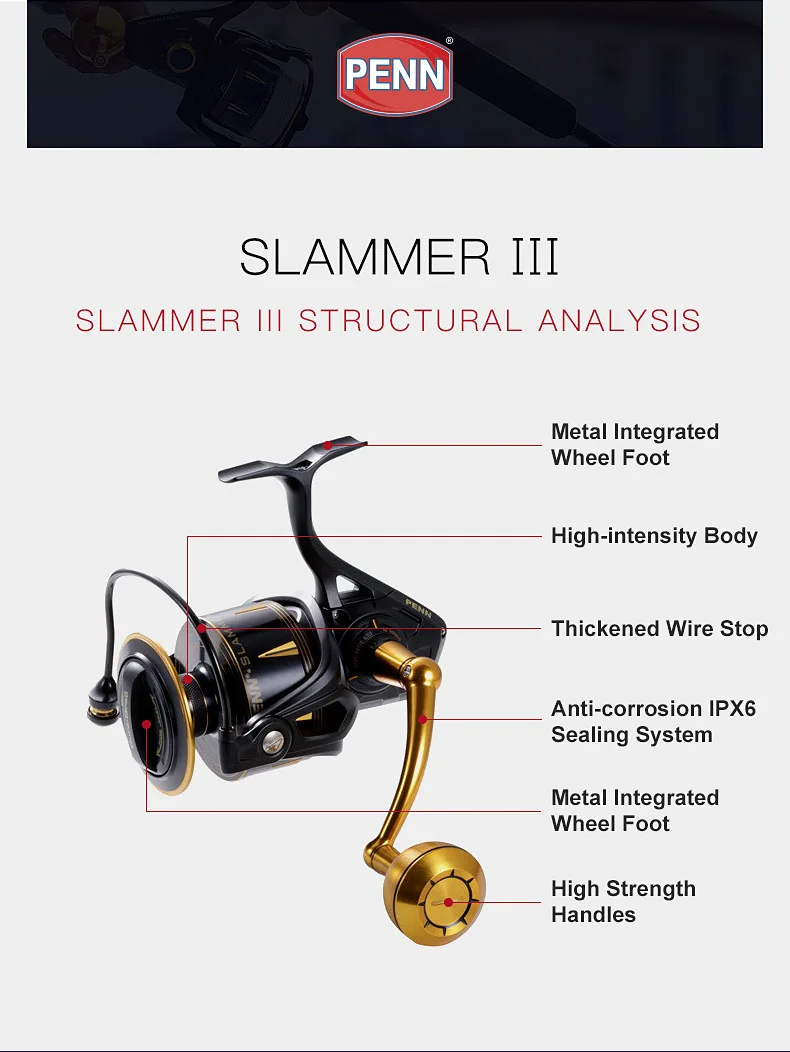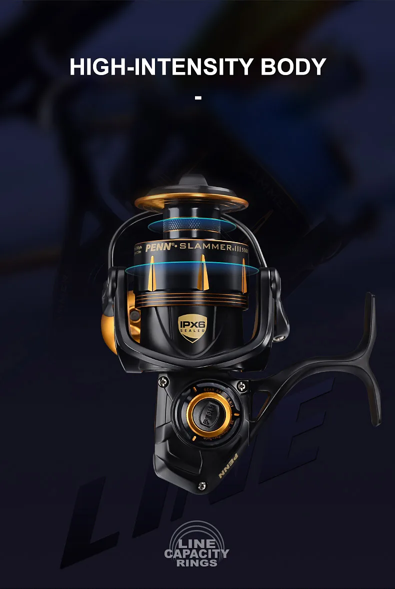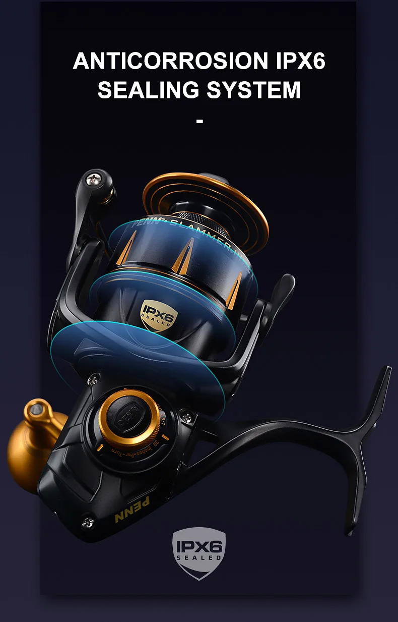 PENN SLAMMER III SLAIII 3500-10500 Barco Shore Spinning Carrete de pesca Cuerpo completo de metal 6 + 1BB CNC Gear IPX6 Carretes de agua salada sellados
