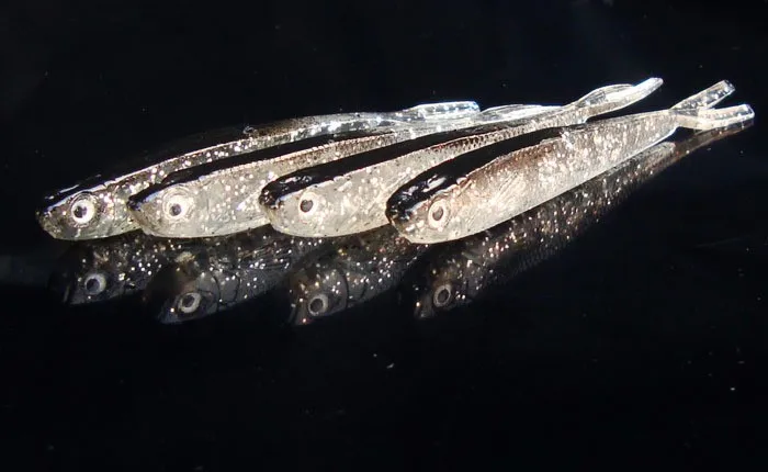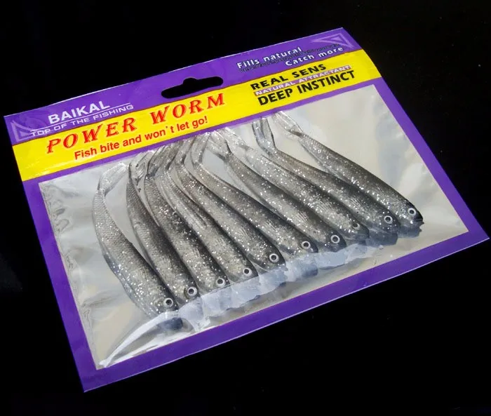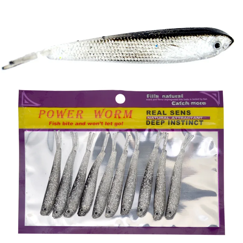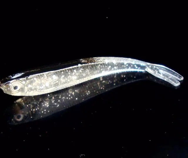 Pequeño señuelo de pesca de cebo suave de pez negro, señuelos artificiales de gusano, mordedura de pez, bolsa de 10 piezas, 7cm
