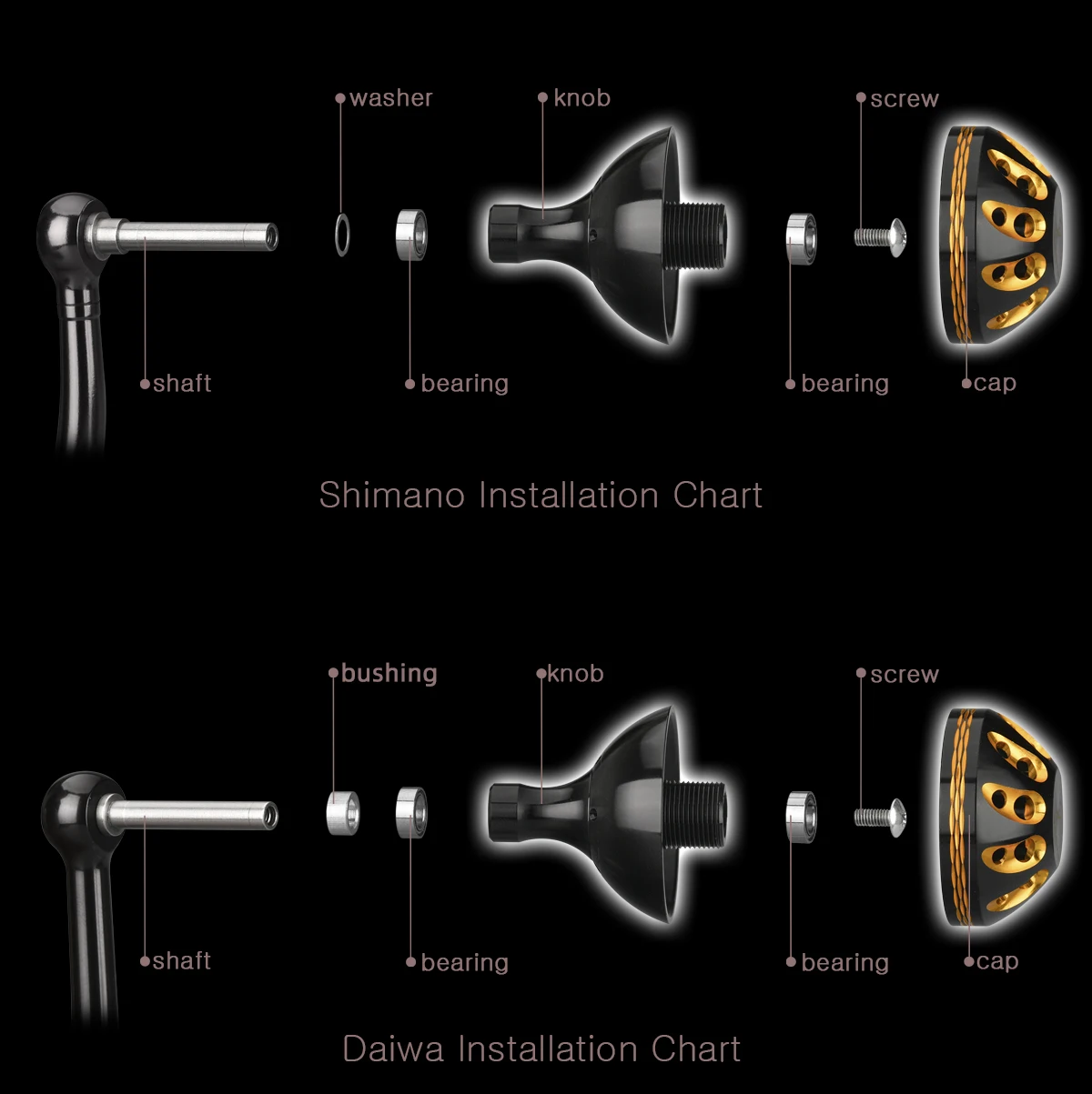 Esta es una perilla tipo A, instalación directa para carretes giratorios Shimano A y Daiwa S.