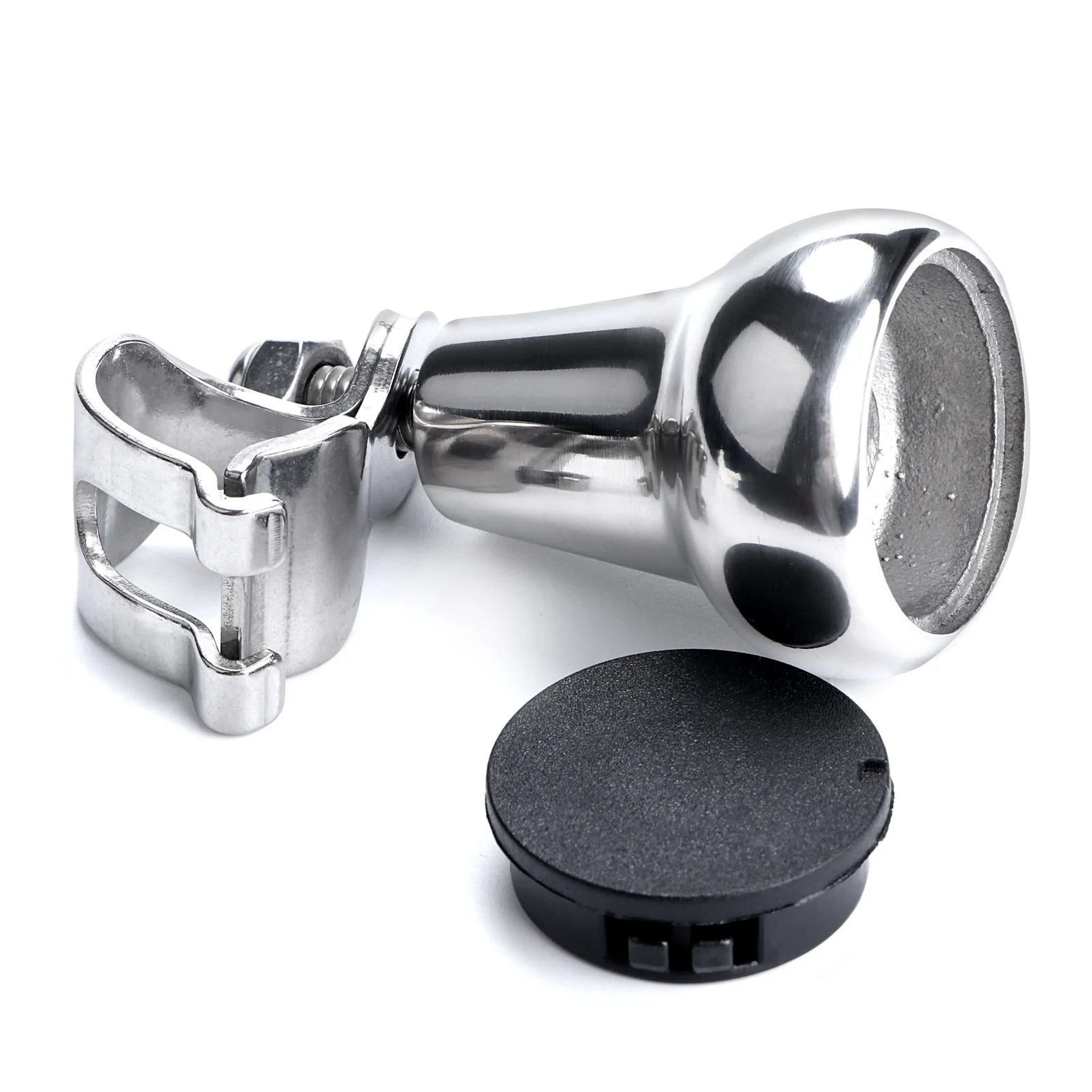 Perilla marina de volante de acero inoxidable, mango de potencia, perilla de agarre de bola, ayudante de torneado con tapa de plástico para accesorios de barco