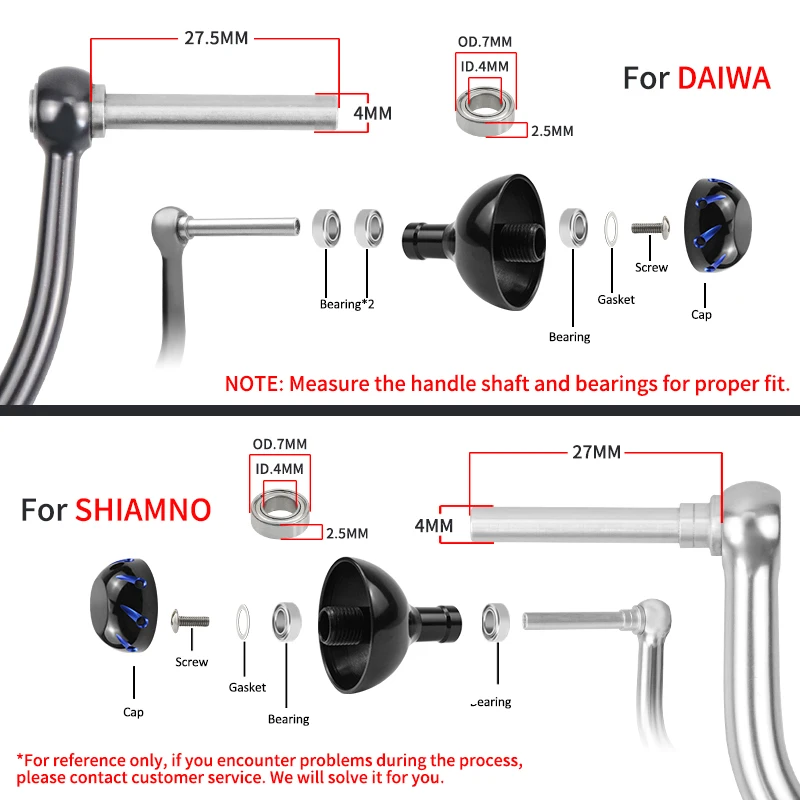 Perillas de aleación EKFan de 38MM 20G para manijas de carrete de rueda Sipnning de eje de 4MM Dawa Shman