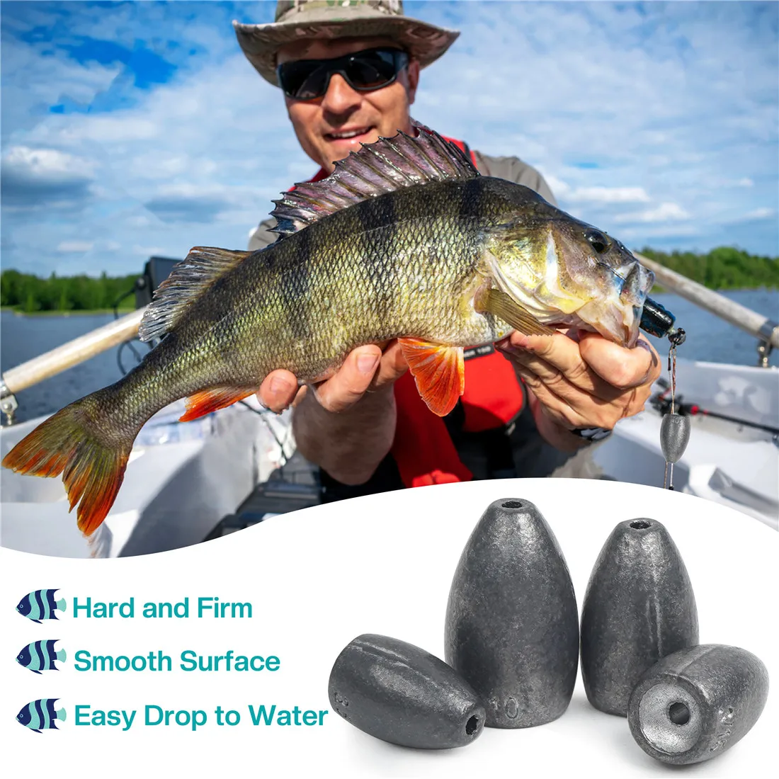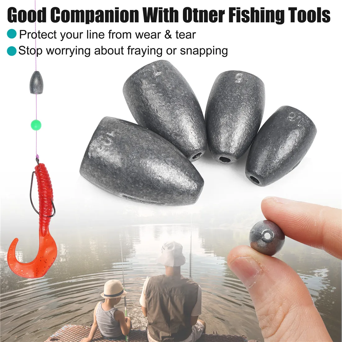 Peso de pesca de bala de 60, plomos antideslizantes, pesos de gusano, pesas de pesca deslizantes, herramientas de plomos, aparejos de Texas para aparejos de pesca de lubina