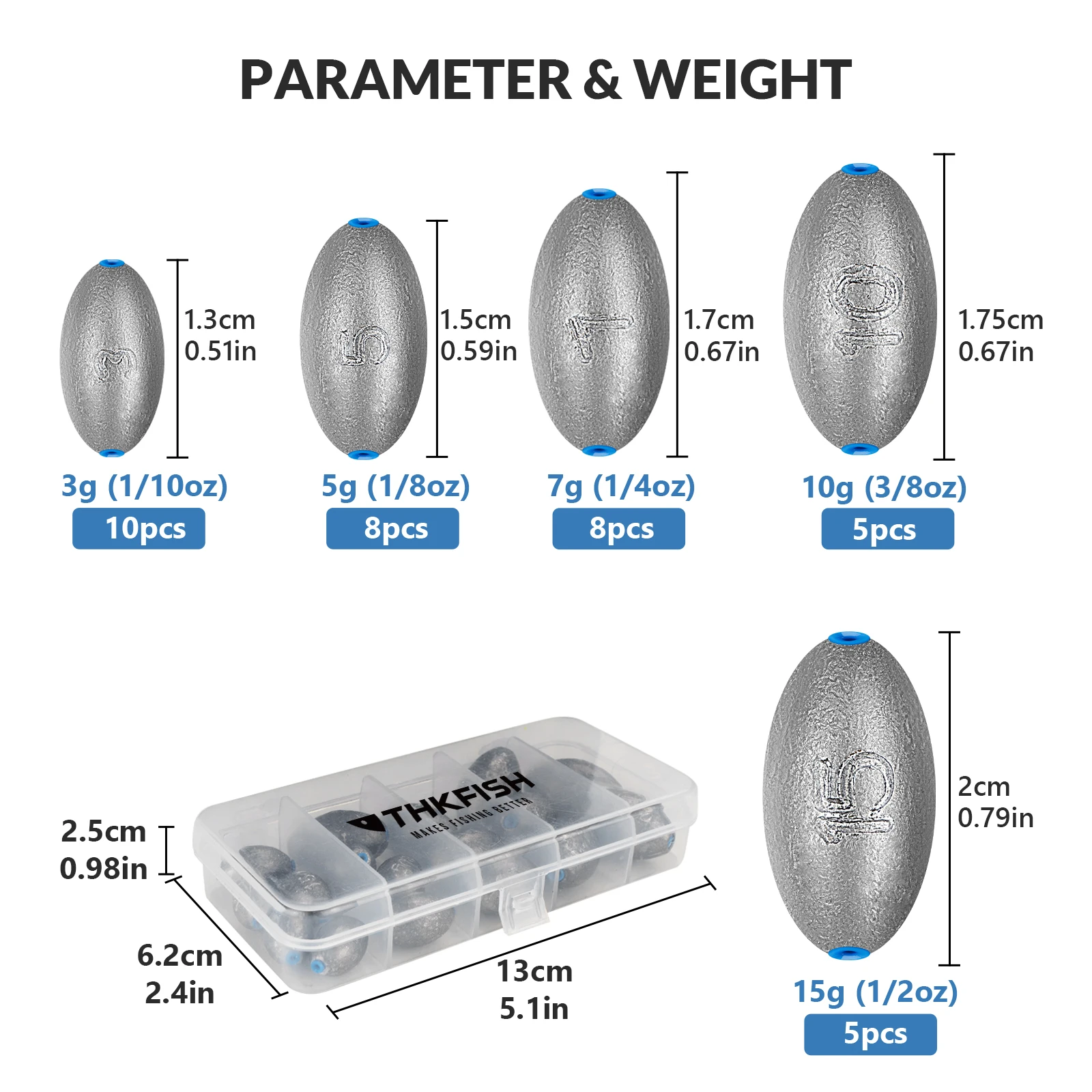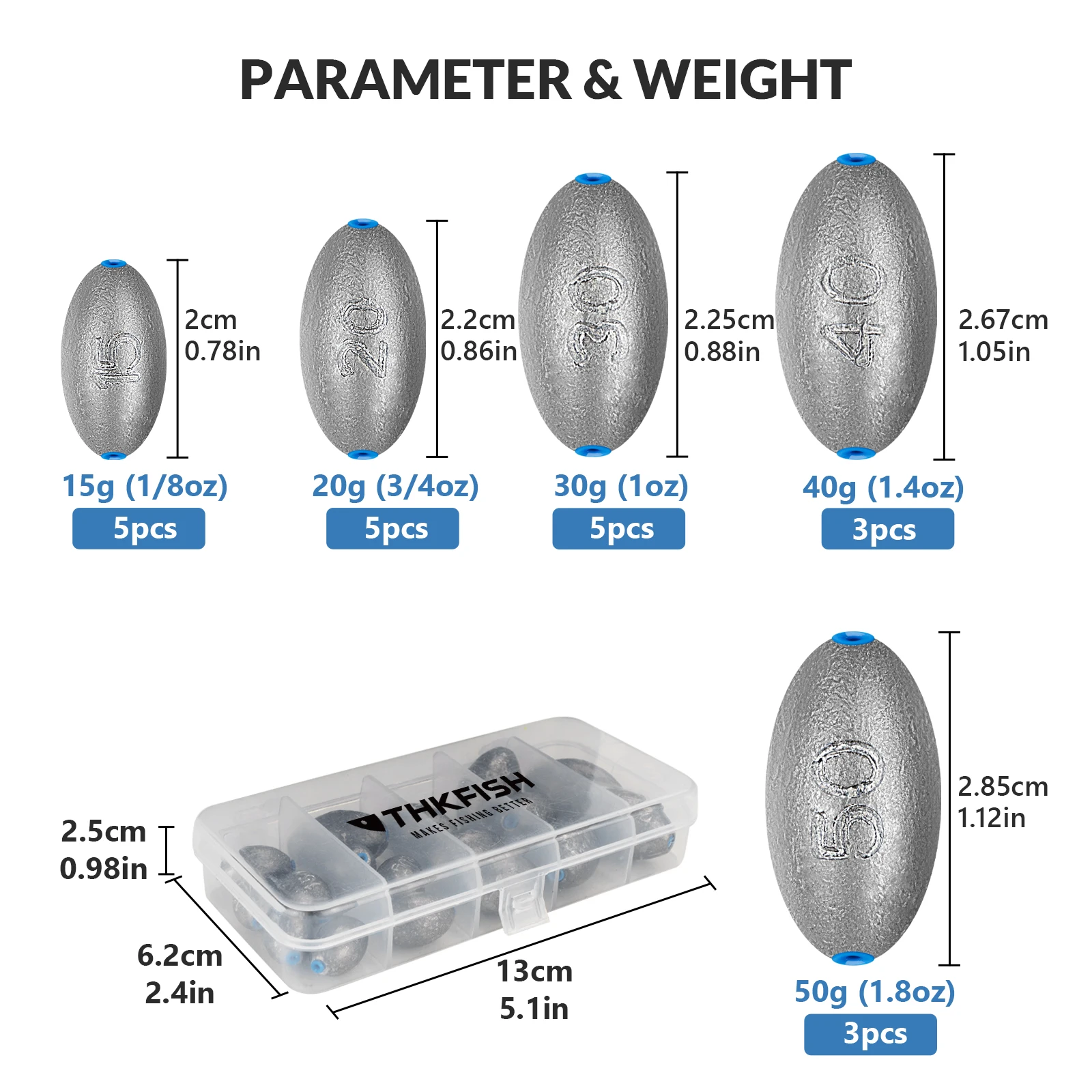 2. PESAS DE PESCA CON GIRATORIOS EN LÍNEA: dado que el arrastre puede provocar un giro de la línea, las plomos en línea THKFISH están equipadas con eslabones giratorios en ambos extremos del plomo para reducir el giro de la línea. El Plomo en línea le permite pescar un pequeño señuelo liviano como una cabeza de plantilla flotante en aguas profundas sin torcer la línea.