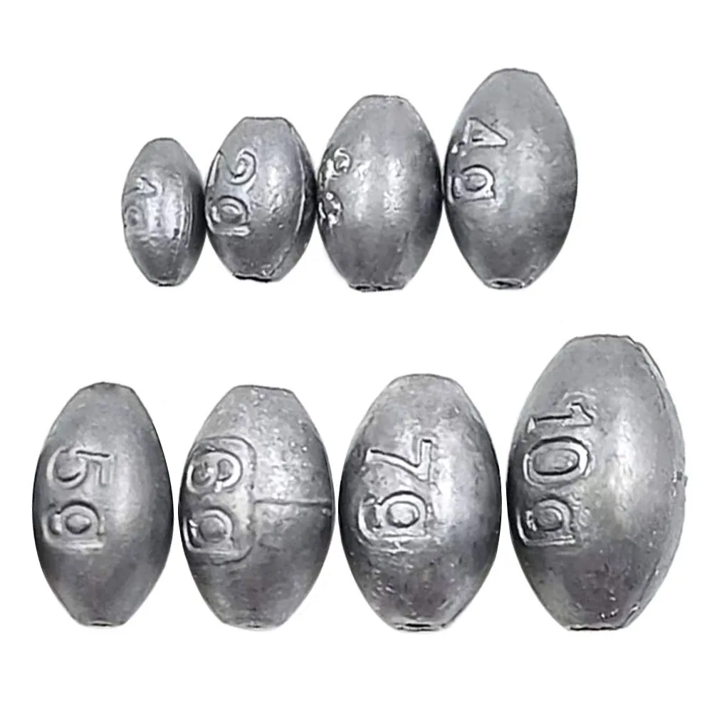 2.HUEVOS PLOMO:Estos pesos en forma de huevo son ampliamente utilizados en varios aparejos de pesca, como Texas y Carolina Rigs, Slip Bobber Rig. La forma de huevo hace que estas plomos sean bastante resistentes y puedan rodar a lo largo de la parte inferior.