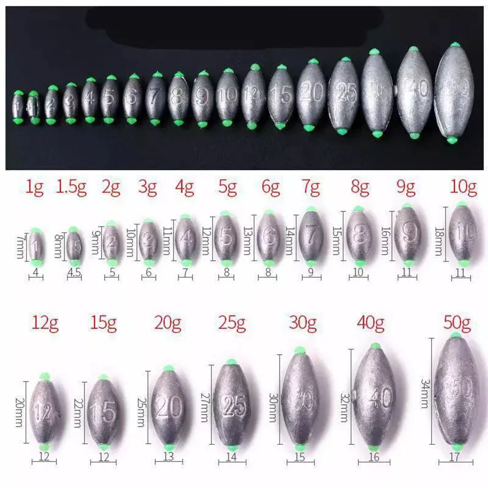 Pesas de pesca de 10 piezas, 2g-30g, forma de oliva, antideslizantes, accesorios de pesca de carpa