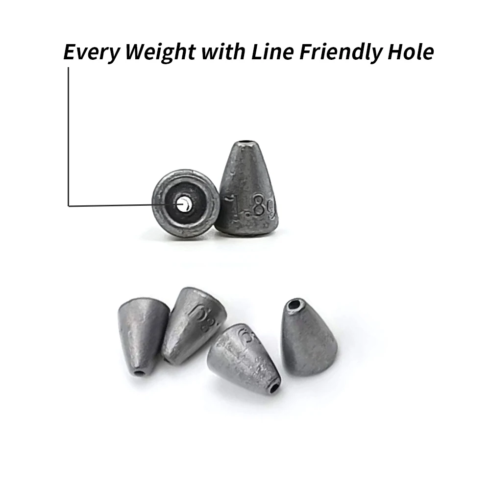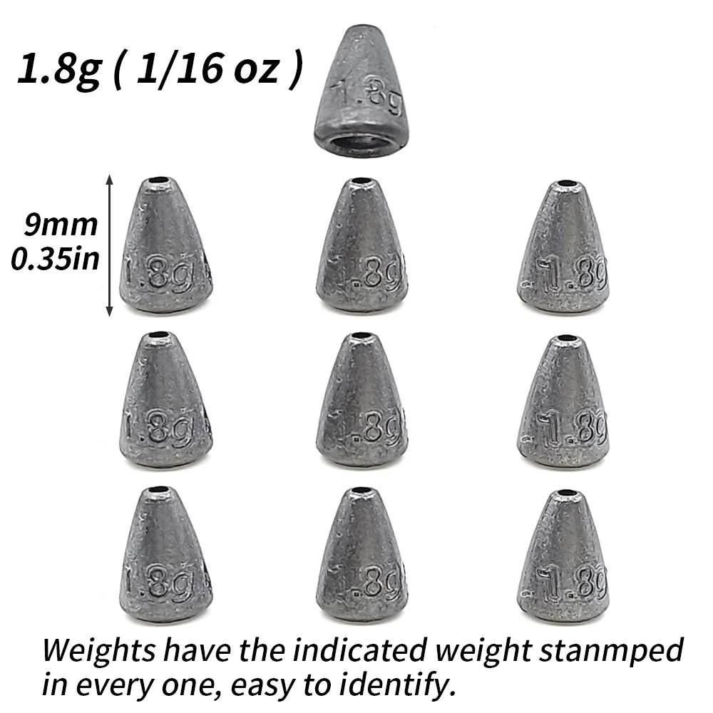 FÁCIL DE USAR: buenos pesos con un agujero para atar fácilmente. El peso de la bala de pesca puede ser ampliamente utilizado para componer diferentes tipos de jigs de pesca. Estos plomos de agua salada funcionarían perfectamente en el hundimiento con menos resistencia, caída al agua de tiro rápido que se hunde en el área de uso del agua.