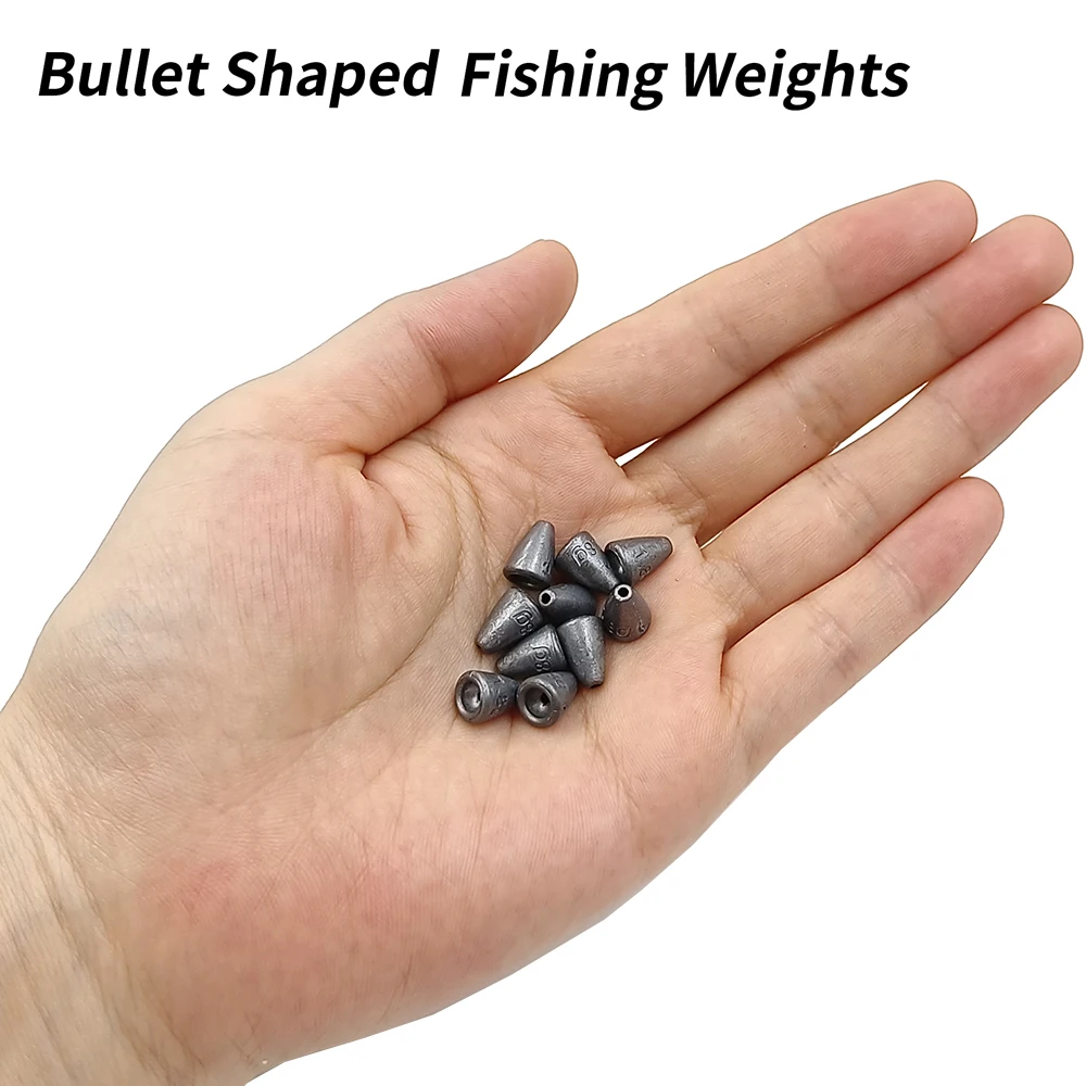 Plomos en forma de bala: los pesos corporales en forma de bala se pueden usar para pescar alrededor de las rocas, no se cuelgan tanto como los pesos de gota de lágrima o de tiro redondo. Los pesos son perfectos en forma y tamaño para su uso en agua dulce. No es fácil de enganchar en el fondo del lago o río. Si está pescando en lugares donde es propenso a perder plataformas debido a enganches, estas plomos son el camino a seguir.