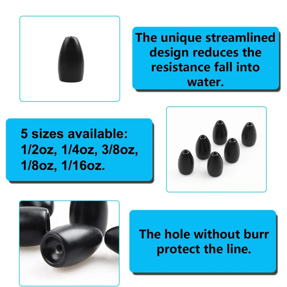 1.Pesos de pesca de acero de tungsteno: acabado suave, sin astillas ni decoloración, resistente a la corrosión y de alta densidad, diseño de forma aerodinámica, se hunde más rápido con salpicaduras más pequeñas.Apto tanto para agua salada como para agua dulce.