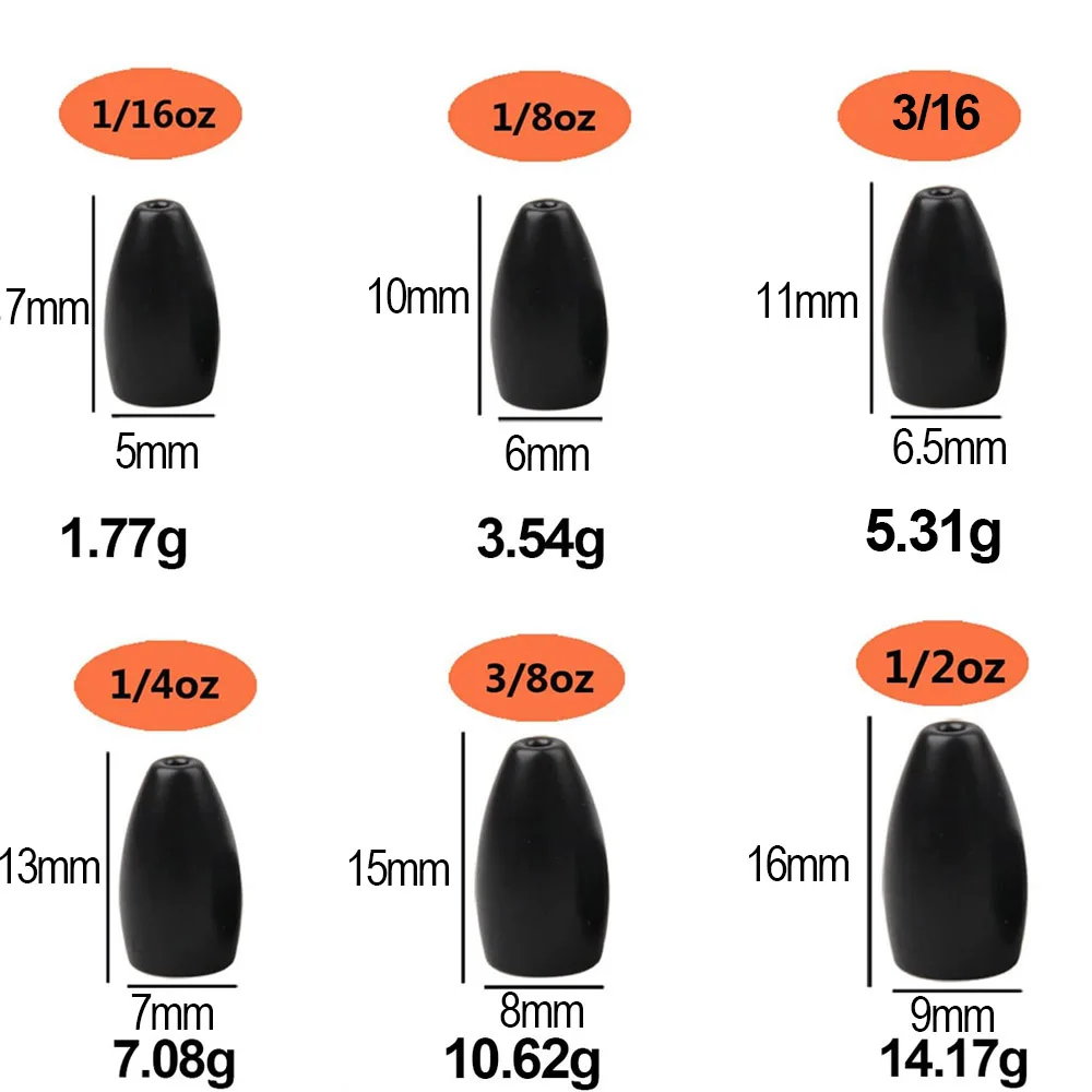 Pesos de pesca de tungsteno, pesas de plomos de pesca tipo bala, anzuelo de gusano, lubina, trucha, señuelo de pesca, accesorios, herramientas de aparejos