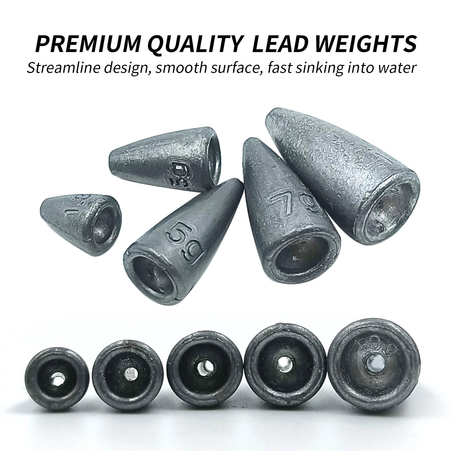 PESOS DE PLOMO DE CALIDAD PREMIUM: hechos de materiales de alta calidad y el recuento es preciso, el acabado del peso de pesca es suave, el molde de peso es agradable, pulido con superficie desbarbada. Sin flash moldeado, muy uniforme en longitud y sin huecos en la correa.
