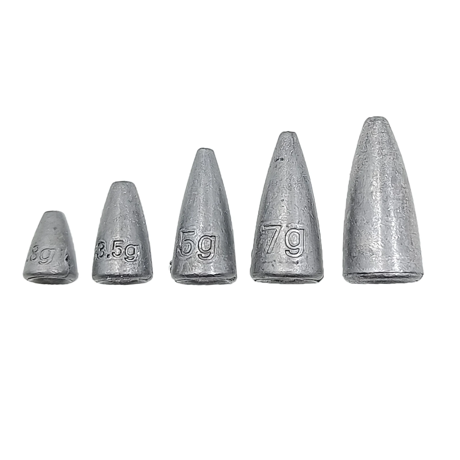Plomos en forma de bala: los pesos corporales en forma de bala se pueden usar para pescar alrededor de las rocas, no se cuelgan tanto como los pesos de gota de lágrima o de tiro redondo. Los pesos son perfectos en forma y tamaño para su uso en agua dulce. No es fácil de enganchar en el fondo del lago o río. Si está pescando en lugares donde es propenso a perder plataformas debido a enganches, estas plomos son el camino a seguir.