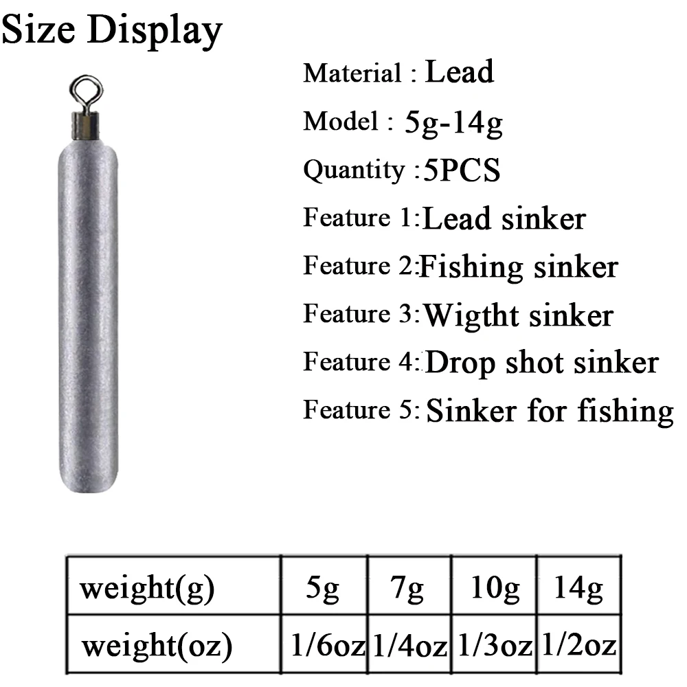 Pesas de pesca blandas, 5g, 7g, 10g, 14g, accesorios de aparejos de pesca, lote de 5 unidades