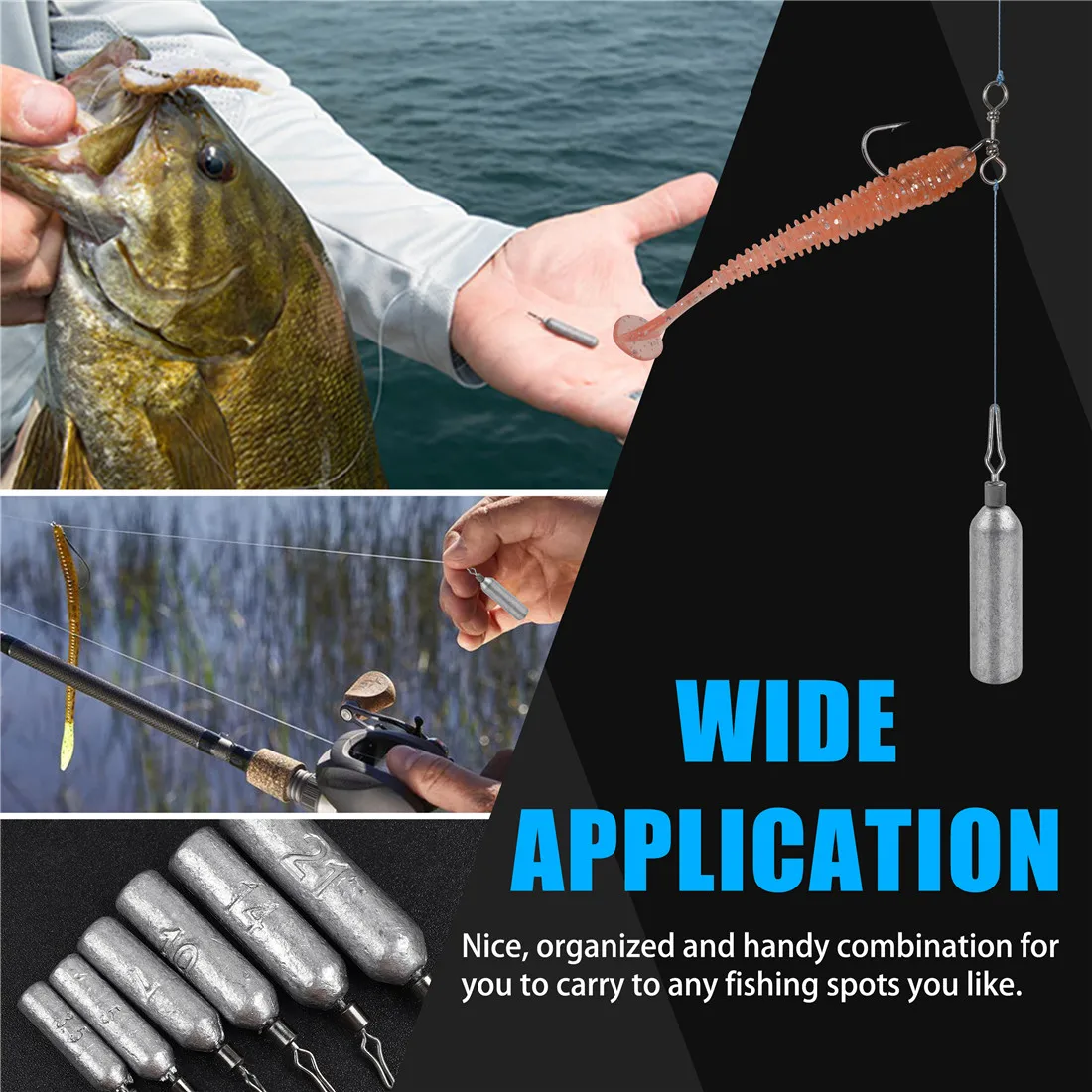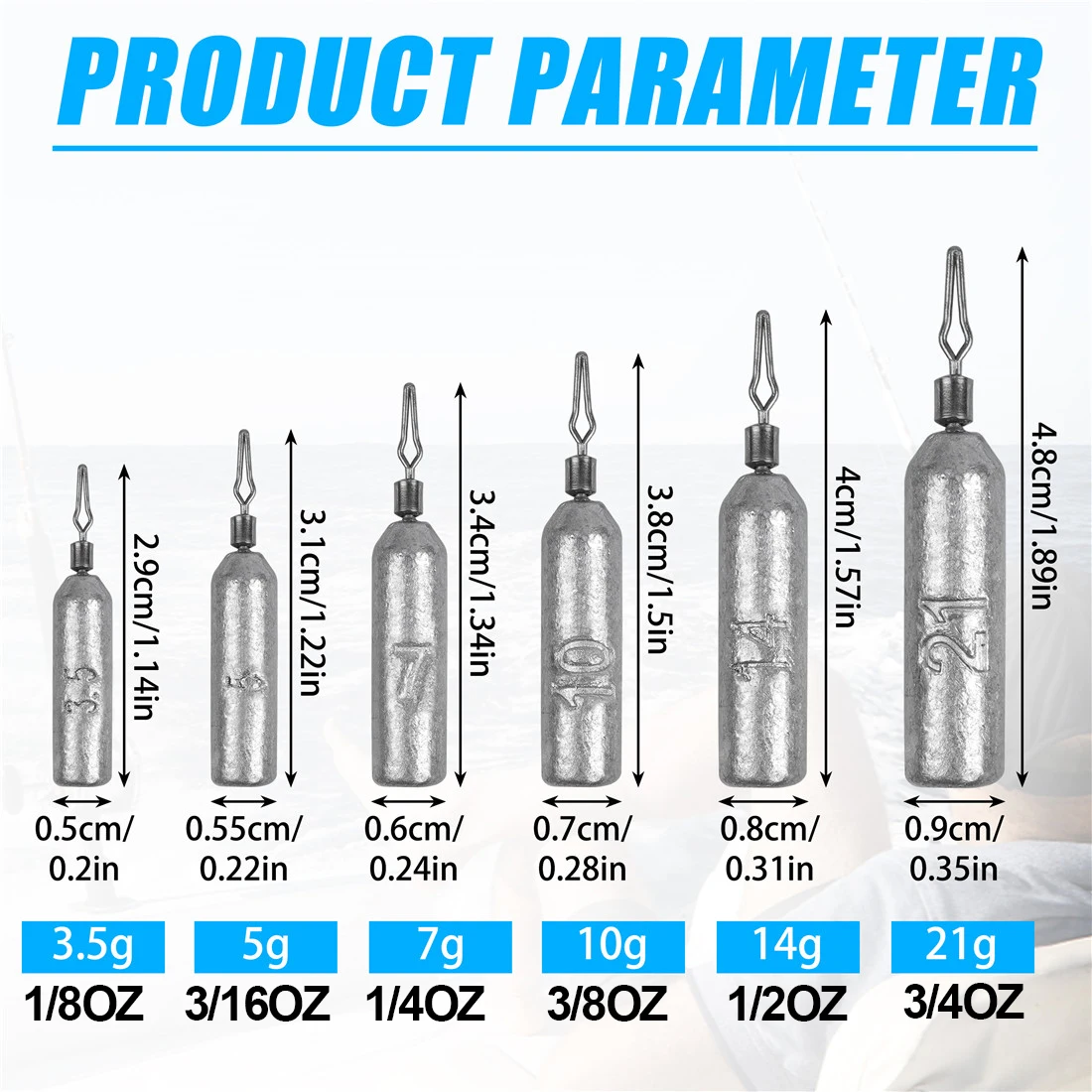 3. Varios tamaños: 6 pesos disponibles 1/8oz,3/16oz,1/4oz,3/8oz,1/2oz,3/4oz, las pesas de lápiz de pesca pueden satisfacer todo tipo de necesidades de pesca, ya sea pesca en ríos, lagos y pesca en el mar.