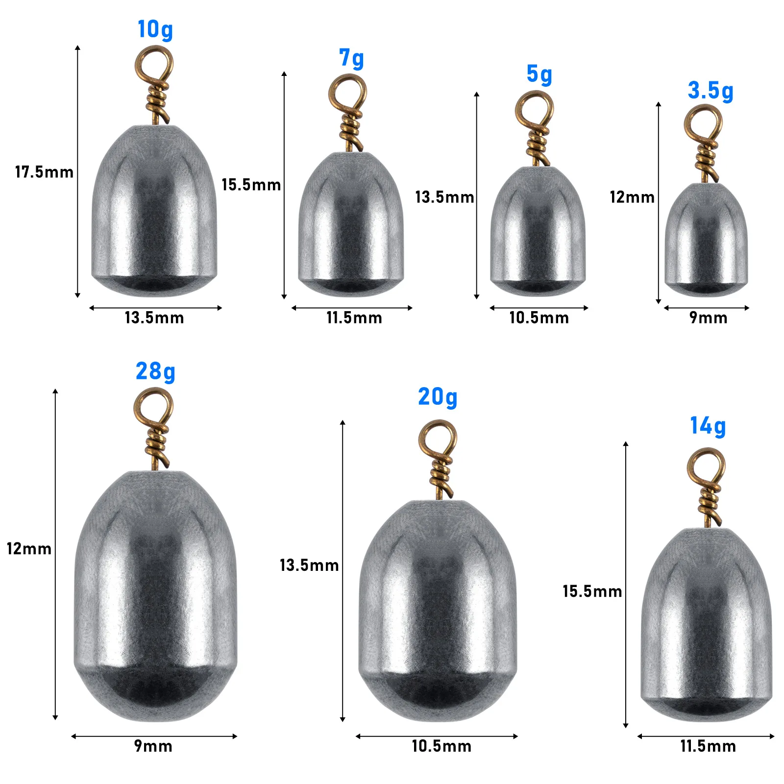 Hecho de hierro y latón: las pesas de pesca están hechas de material de hierro de alta calidad, que es a prueba de óxido, duradero y más respetuoso con el medio ambiente. Resistente y duradero, puede soportar los golpes y magulladuras bajo el agua.