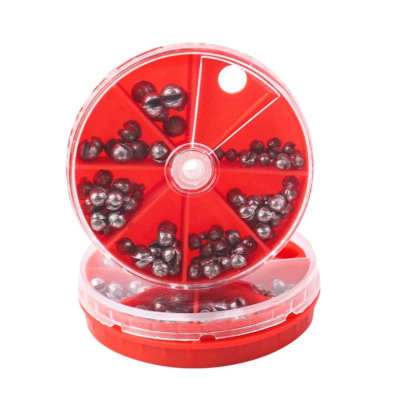 (5) El peso del tiro dividido redondo hecho de plomo puro, alta densidad, golpes suaves con corte central no romperá su línea de pesca, construcción duradera.