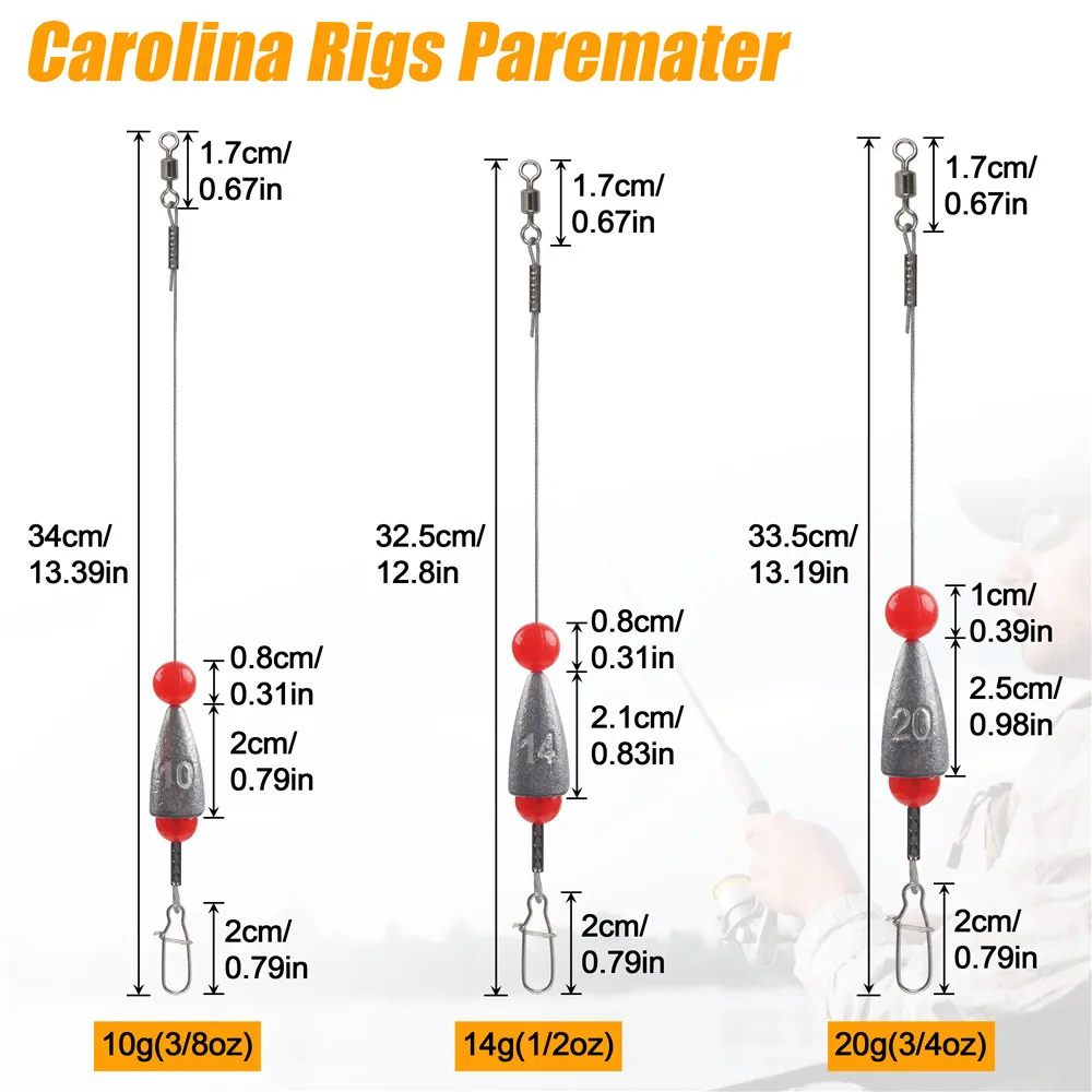 1. Los aparejos Carolina preatados están listos para usar en cualquier momento cuando los necesite sin la molestia de atar los suyos. Ideal para pesca de fondo en agua dulce y salada.