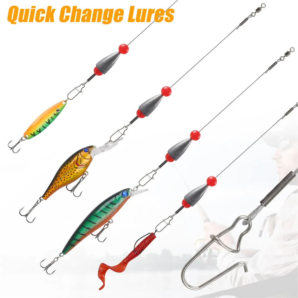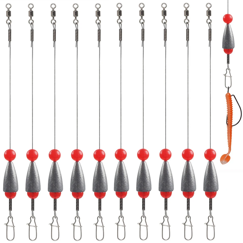2. Cada líder de pesca de acero inoxidable con peso consiste en una palanca giratoria, un peso de pesca, un broche y cuentas de pesca amortiguadoras. Es resistente a la corrosión y el alambre de acero de alta resistencia es ideal para pescar peces grandes.
