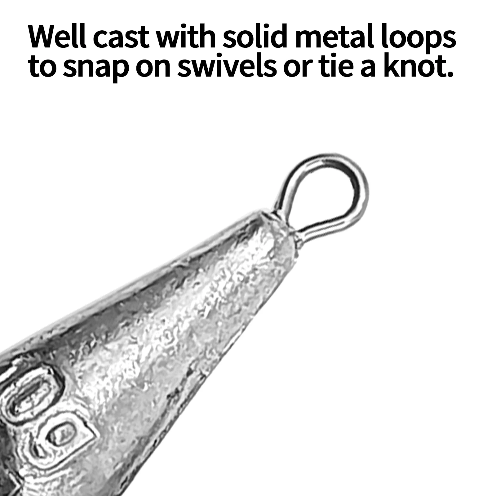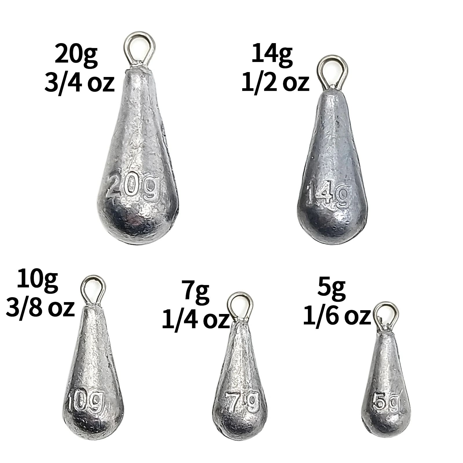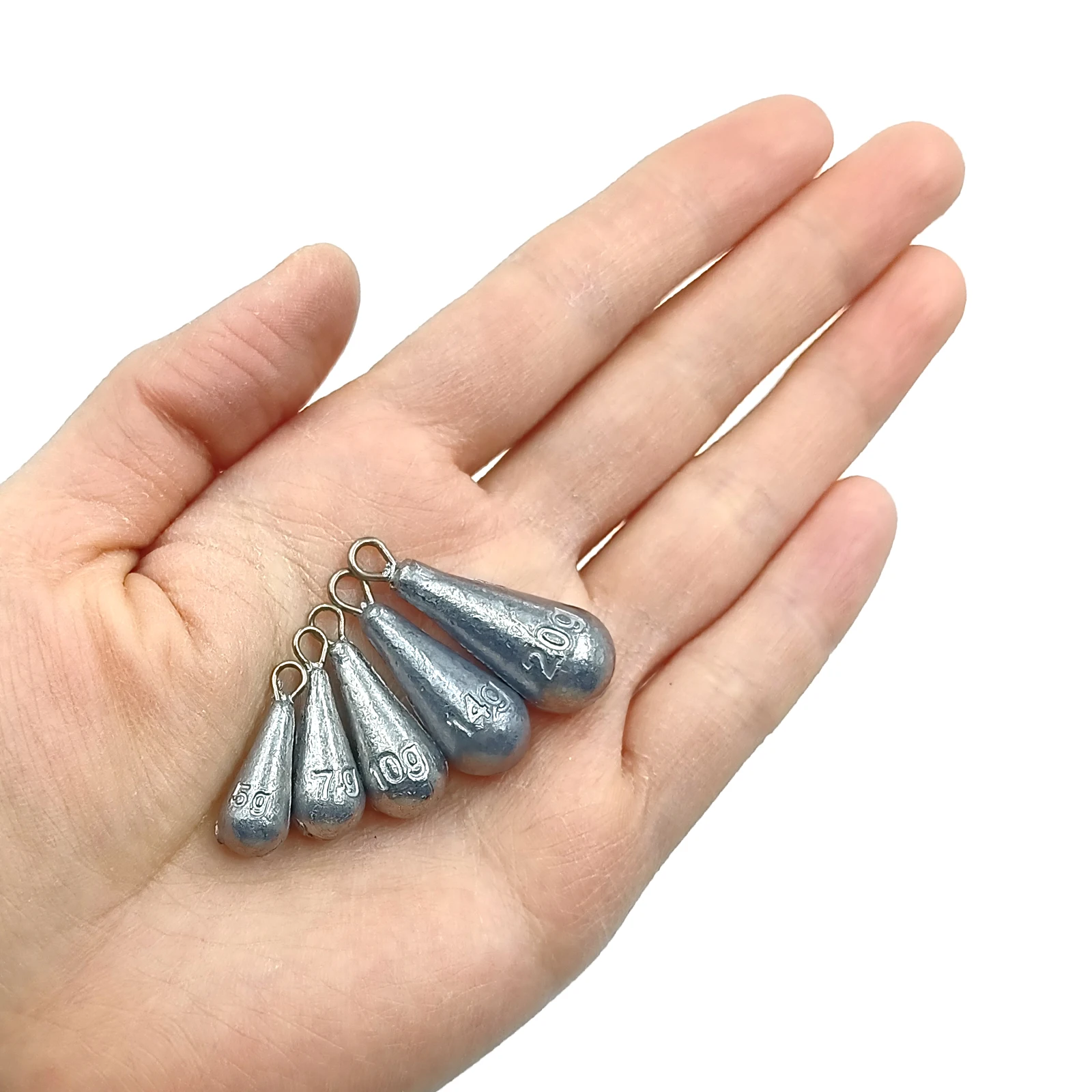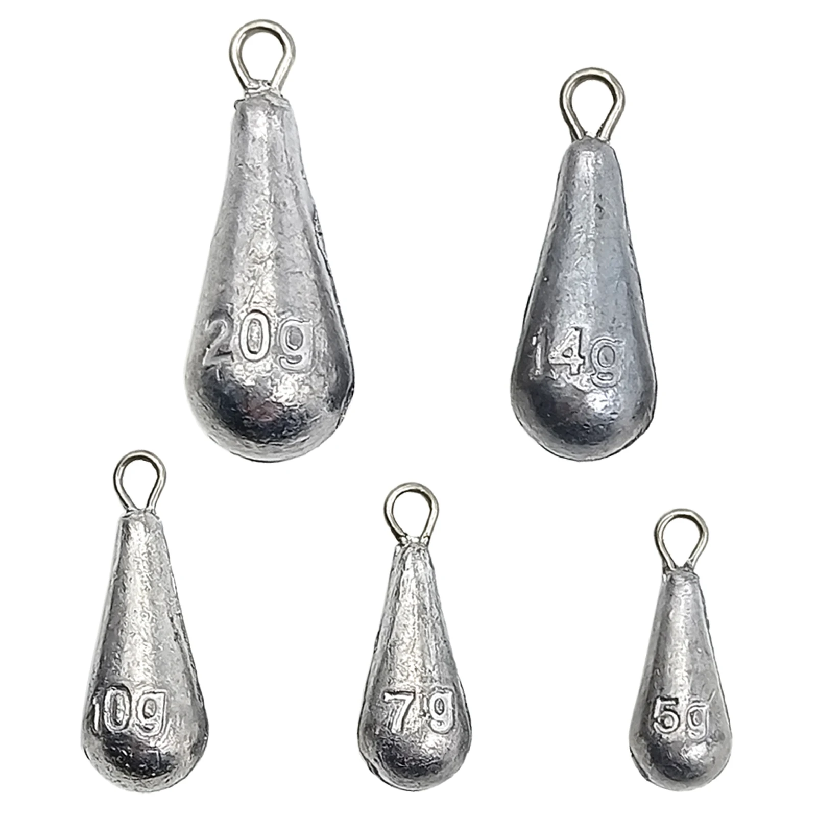 2. La forma de gota ayuda a que se hunda rápidamente y relativamente directamente en el agua. También facilita la recuperación a través del agua. Bucles de metal sólido envueltos en plomo desnudo. La unidad de masa en gramos está moldeada en cada plomada para una fácil identificación.