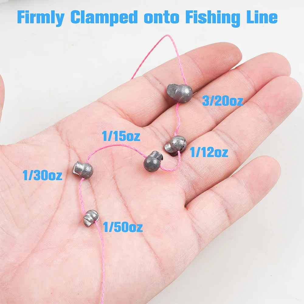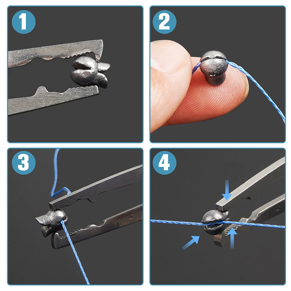 【Extraíble y reutilizable】 Las pesas de tiro dividido de pesca tienen un corte central, coloque su línea de pesca en la ranura de peso de tiro dividido y tome alicates de pesca o use los dedos para apretar y sujetar la línea firmemente.
