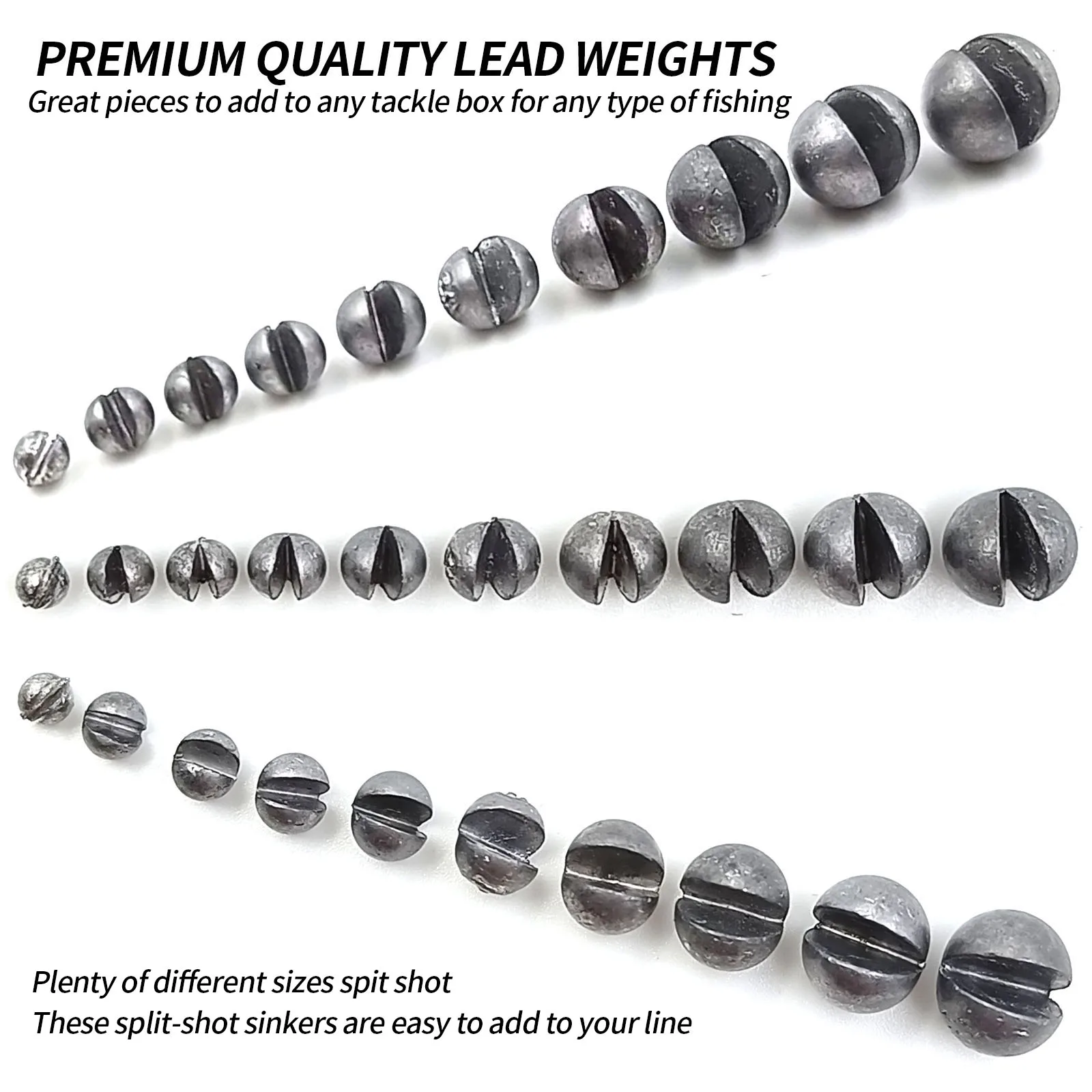 2. Kit simple, nada llamativo: excelentes piezas para agregar a cualquier caja de aparejos para cualquier tipo de pesca, muchos tamaños diferentes. Estas plomos de tiro dividido son fáciles de agregar a su línea.