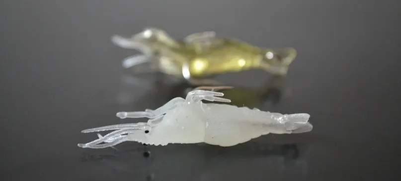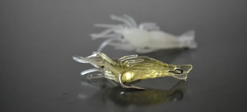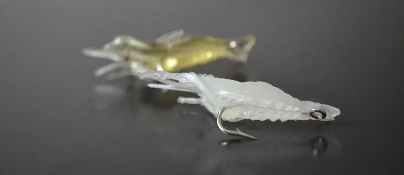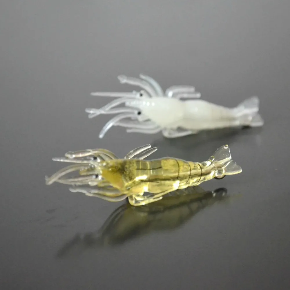 Cebo suave con olor a camarones de 50mm, hierba brillante, gancho de púas, señuelos de pesca de día y noche