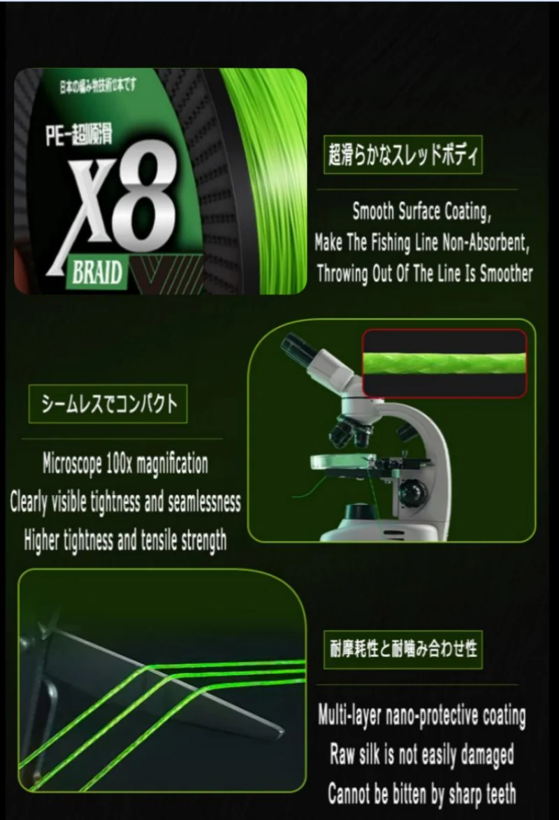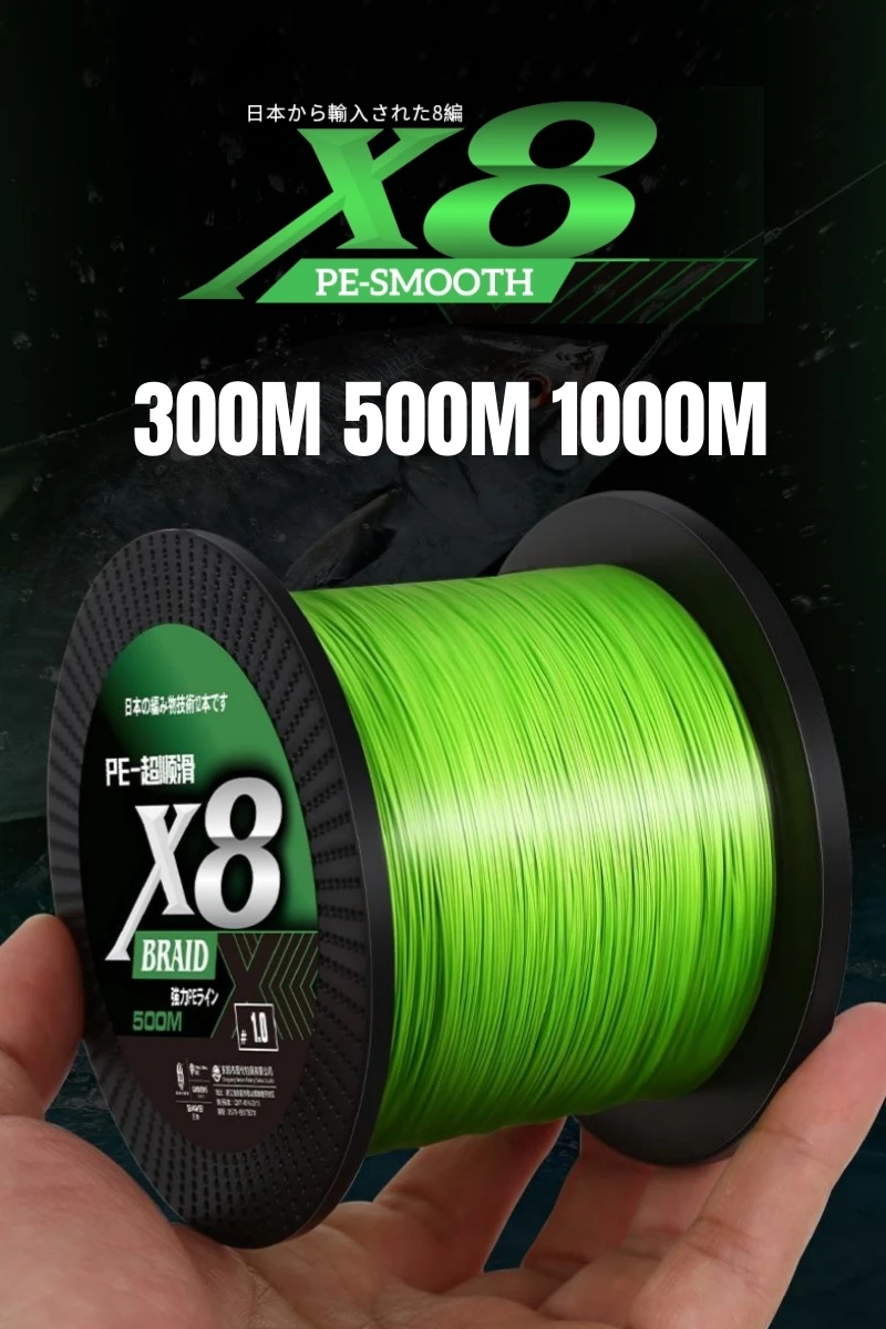 Línea de pesca trenzada de 8 hebras, 300M, 500M, 1000M, Japón, súper fuerte, línea multifilamento de PE, accesorios de pesca de carpa, agua salada, novedad de 2023