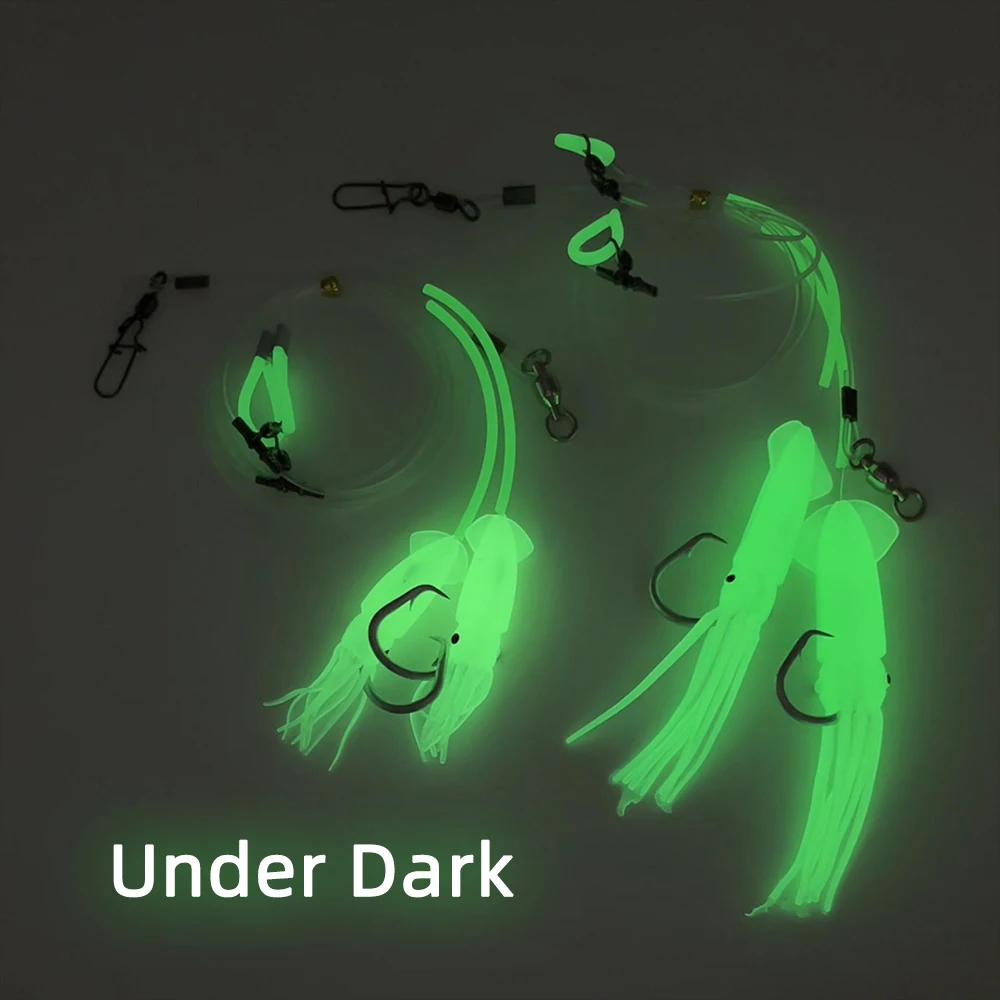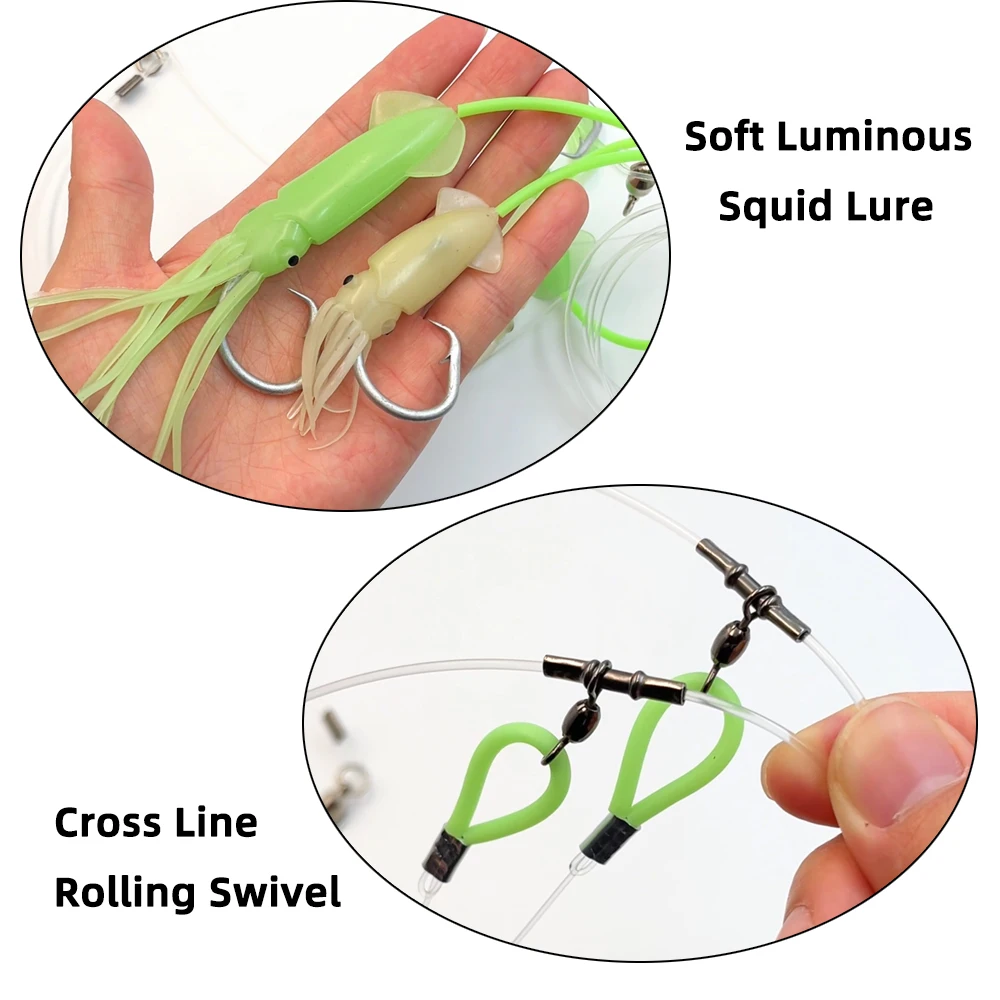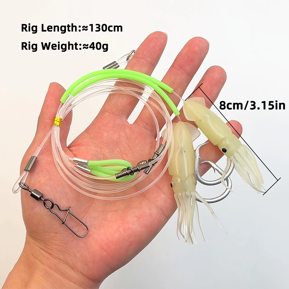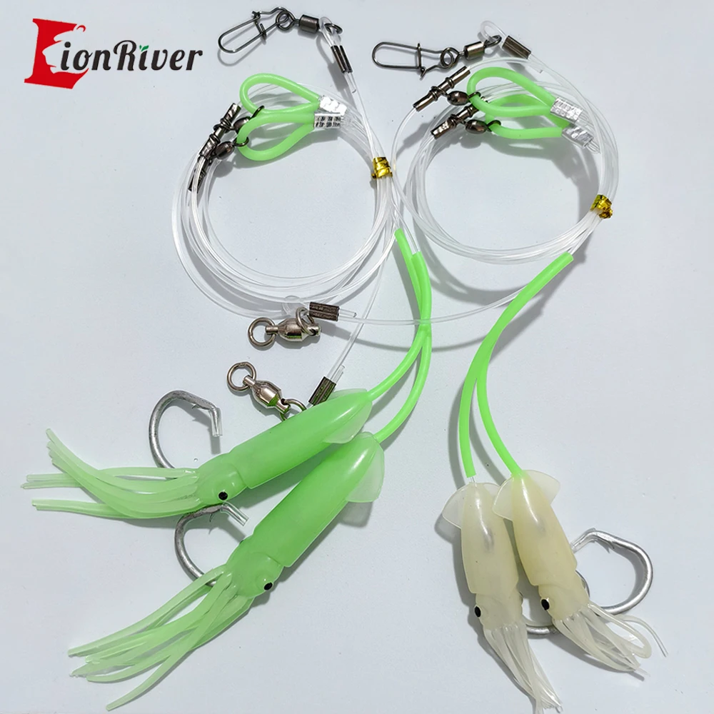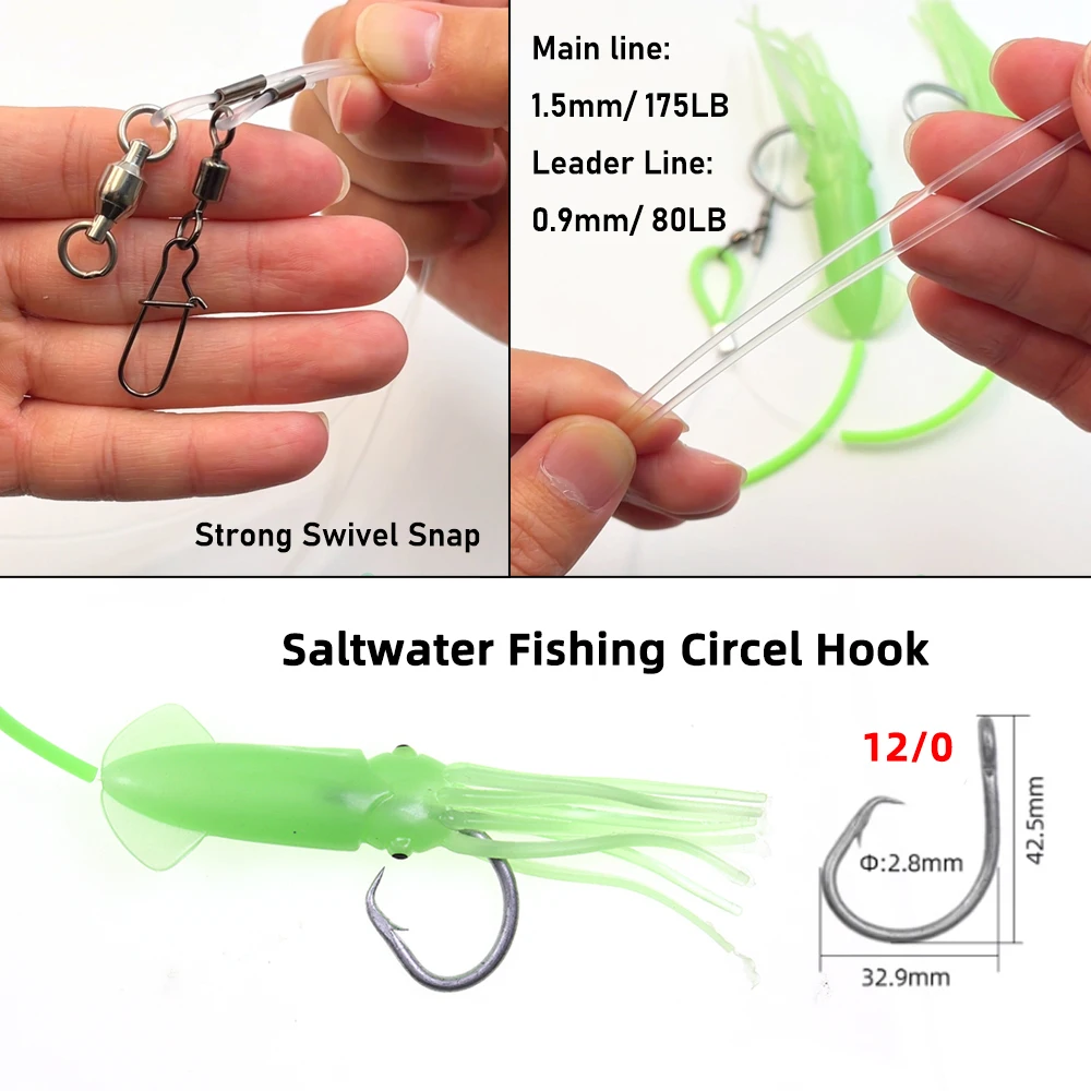 -Eficiente aparejo de pargo profundo con 2 anzuelos circulares y señuelo de pulpo suave y brillante, perfecto para apuntar a peces de azulejos, cultivos, pargos rojos, atún, tiburones, etc.