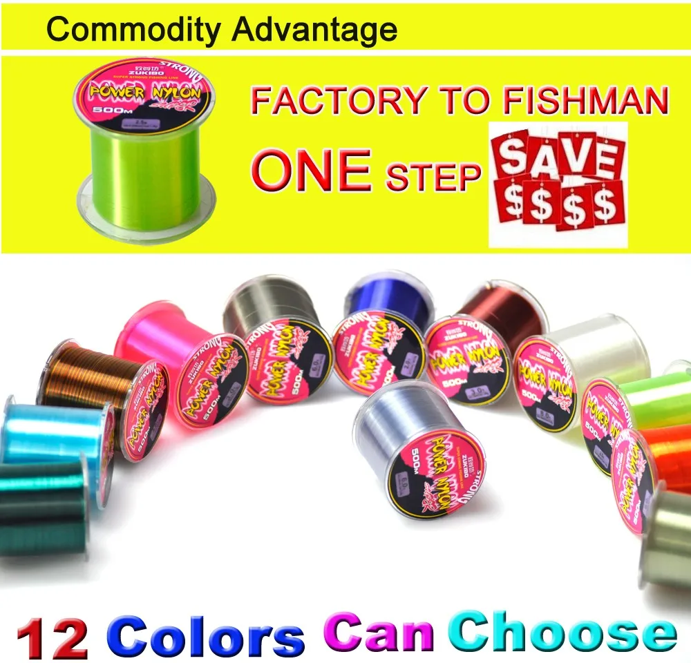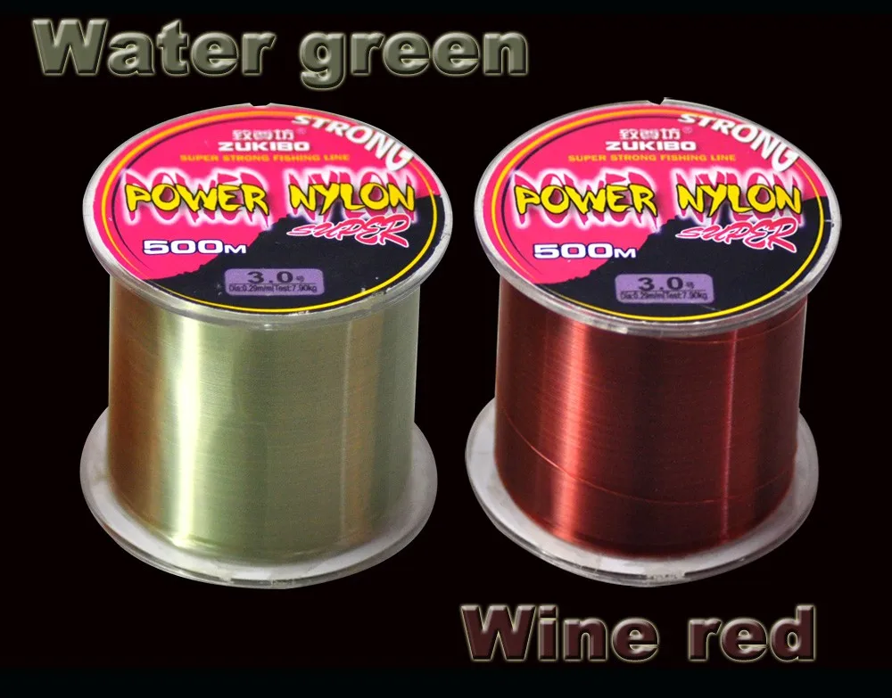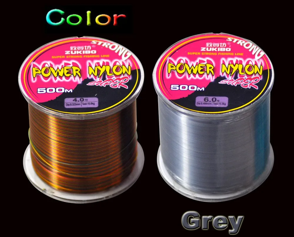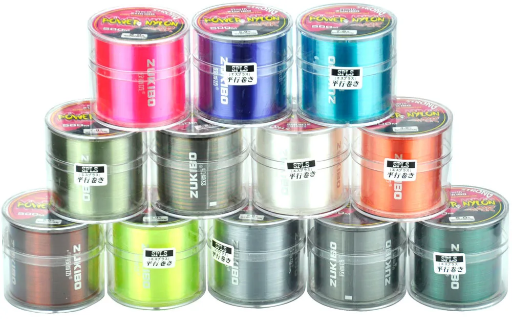 ZUKIBO-línea de pesca de nailon súper fuerte de 500M, monofilamento duradero japonés, línea de pesca de carpa, 12 colores, 5LB-40LB, agua salada