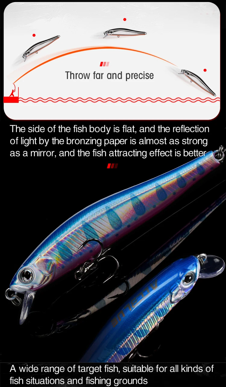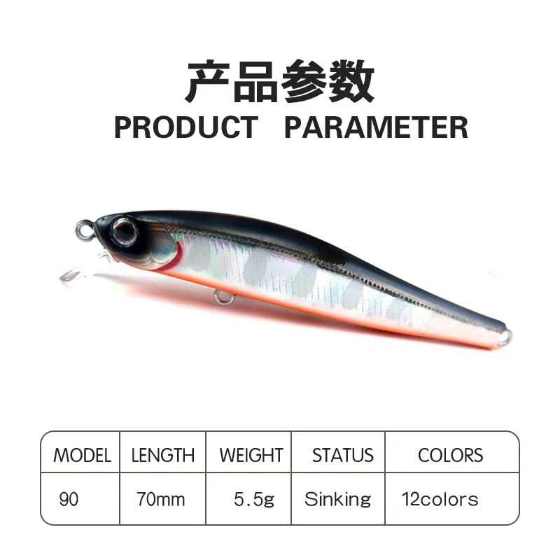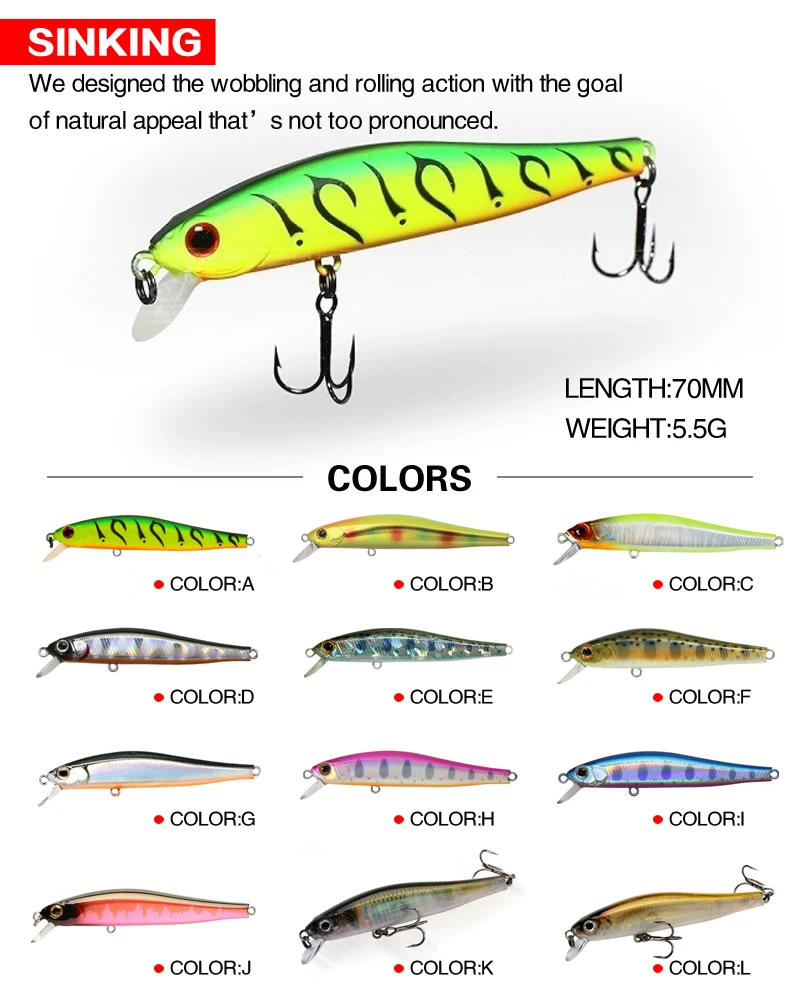 Pesca duro pececillo poco profundo señuelo de Pesca silencioso 70mm 5,5g Wobbler magnético hundimiento lento lubina Lucio trucha cebo Artificial