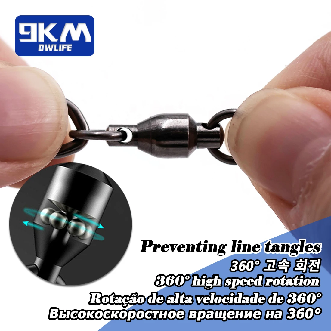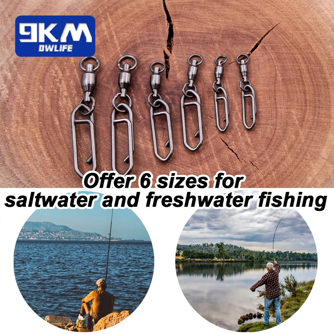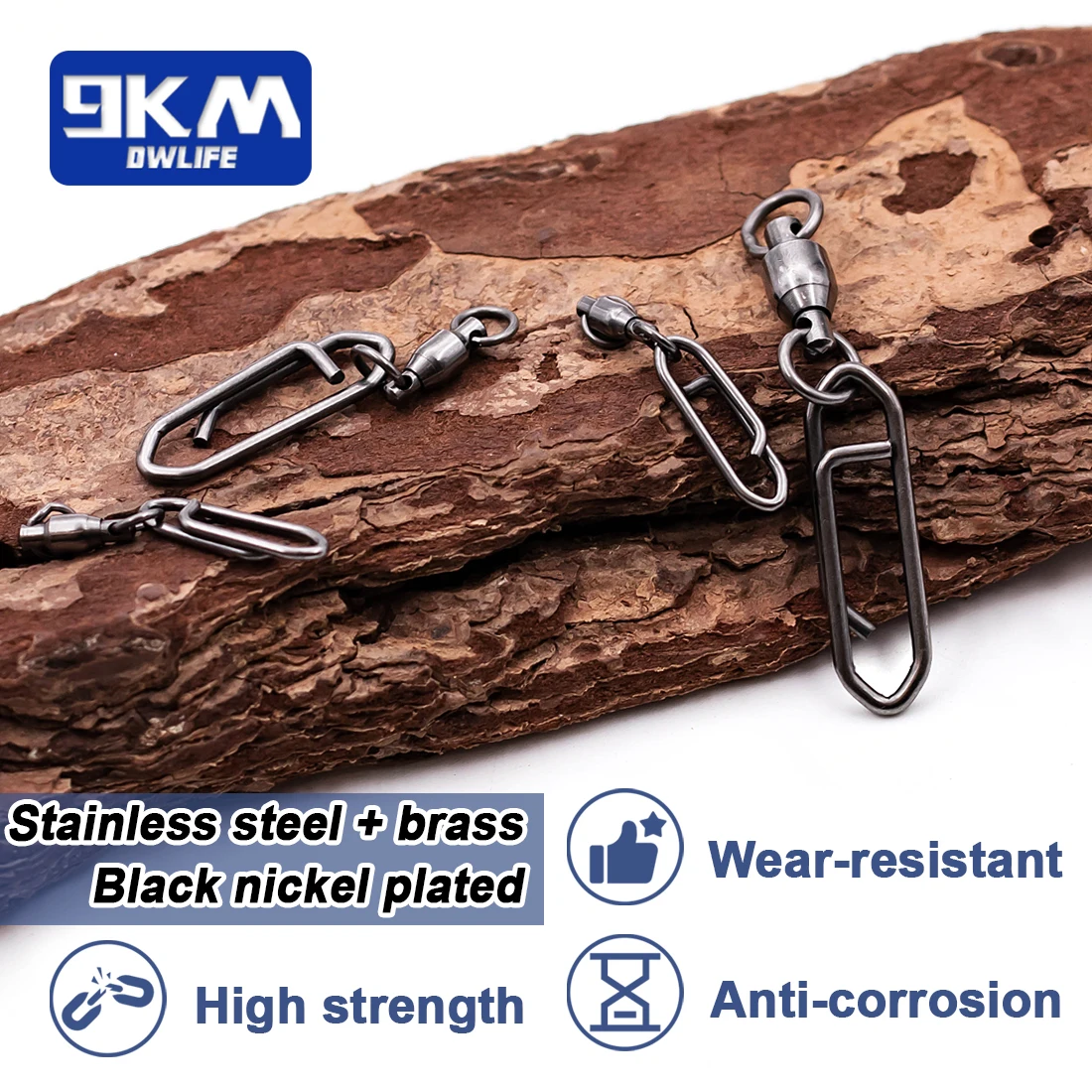 Excellent Material:9KM Fishing Ball Bearing Swivels are made of premium brass and stainless steel.Black chrome plated before assembly.Fishing swivels can be used for extended periods of time in saltwater.