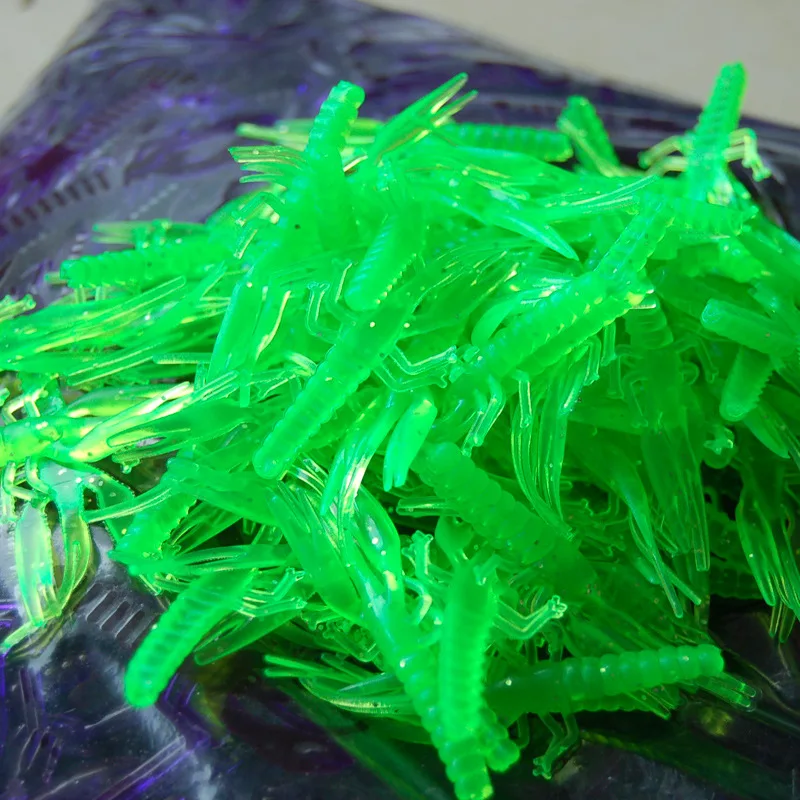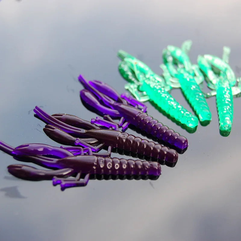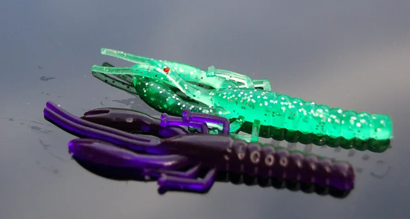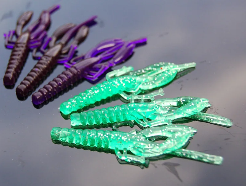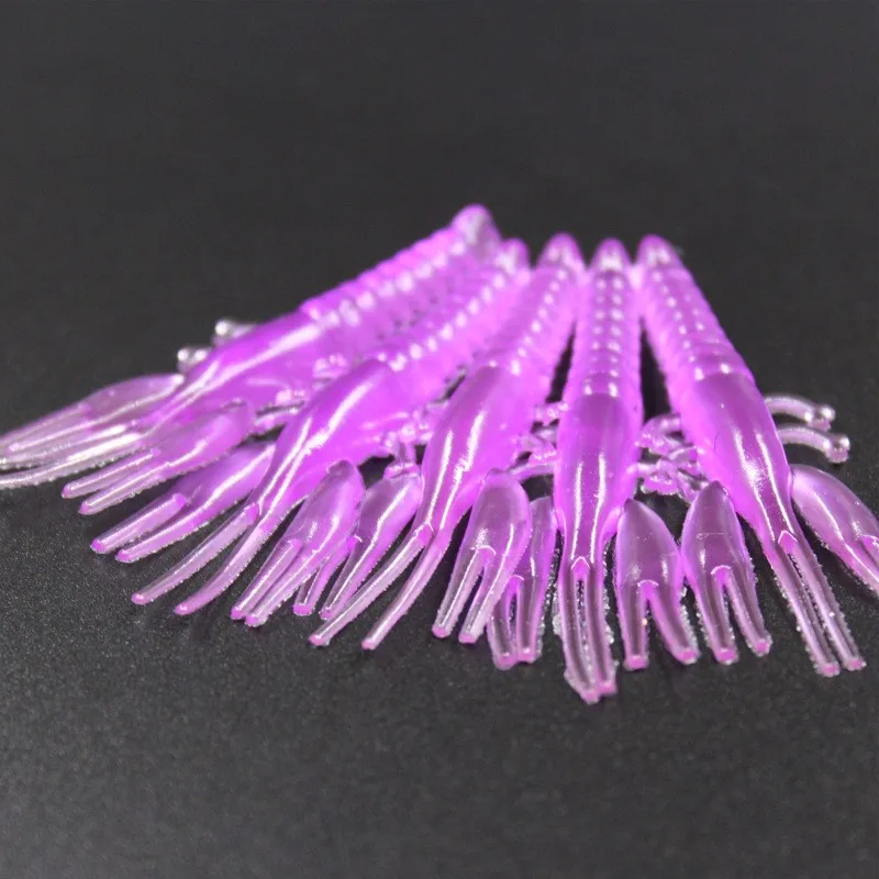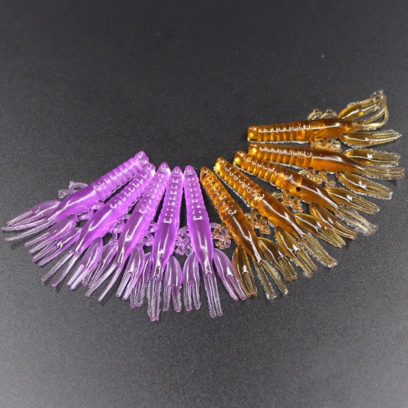 Pesca de hierba suave, cebo suave para camarones, 5cm, camarones pequeños, aparejo Texas, señuelos artificiales, púrpura, marrón, lote de 10 piezas en oferta