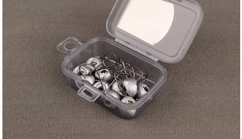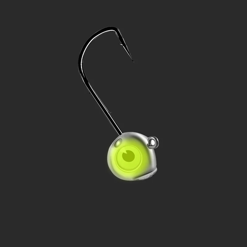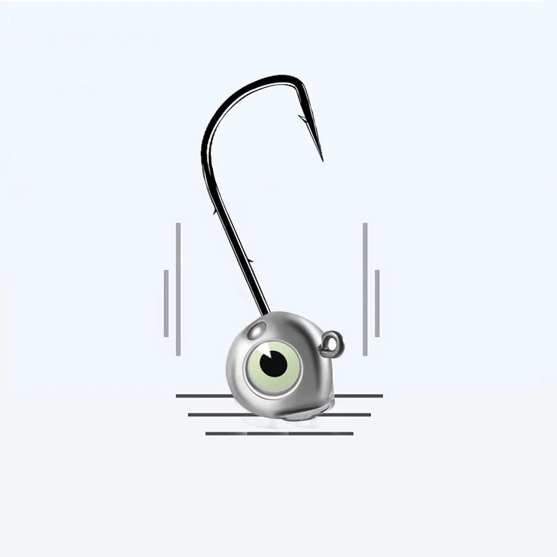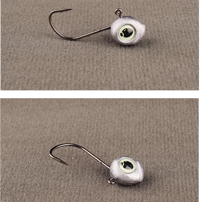 Pesca Jig Head Hook Back con doble púa Aparejos de pesca Accesorios Ganchos de gusano Brillo Ojos luminosos Anti Off Lote 10 piezas VENTA