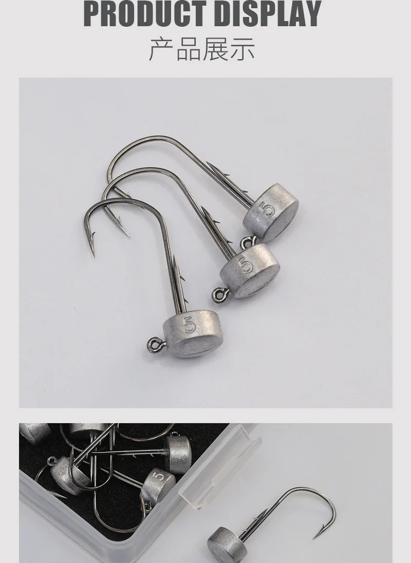 Pesca NED Jig Head Hook Fuerte de tracción Moldeo Doble púas Ganchos afilados Lote 12 piezas VENTA