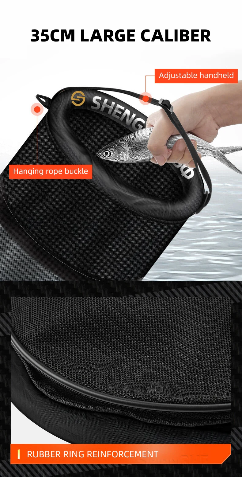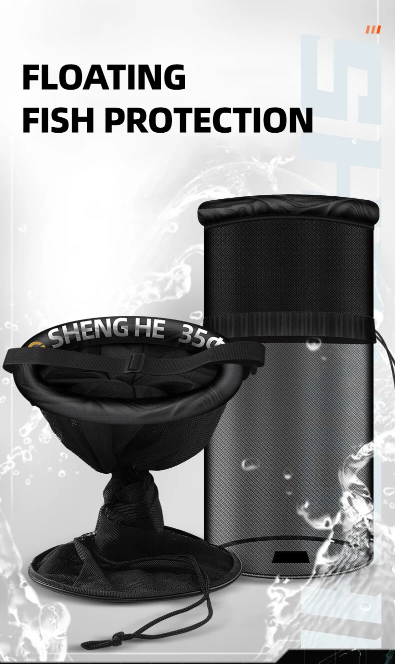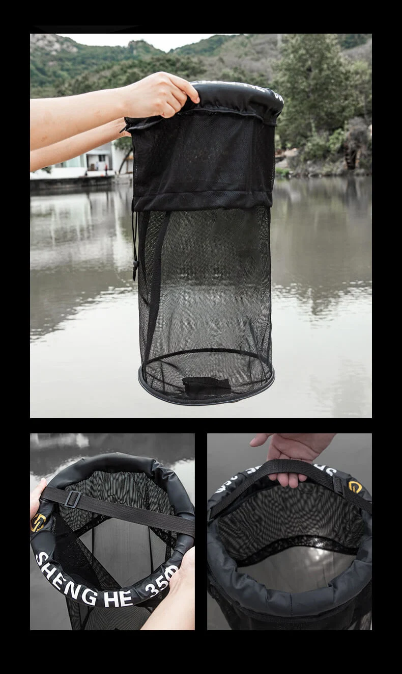 Protección flotante para peces para atrapar la cesta para peces cargada en el mar, protección redonda para pesca, bolsa de malla de nailon, portátil para cerrar la hebilla