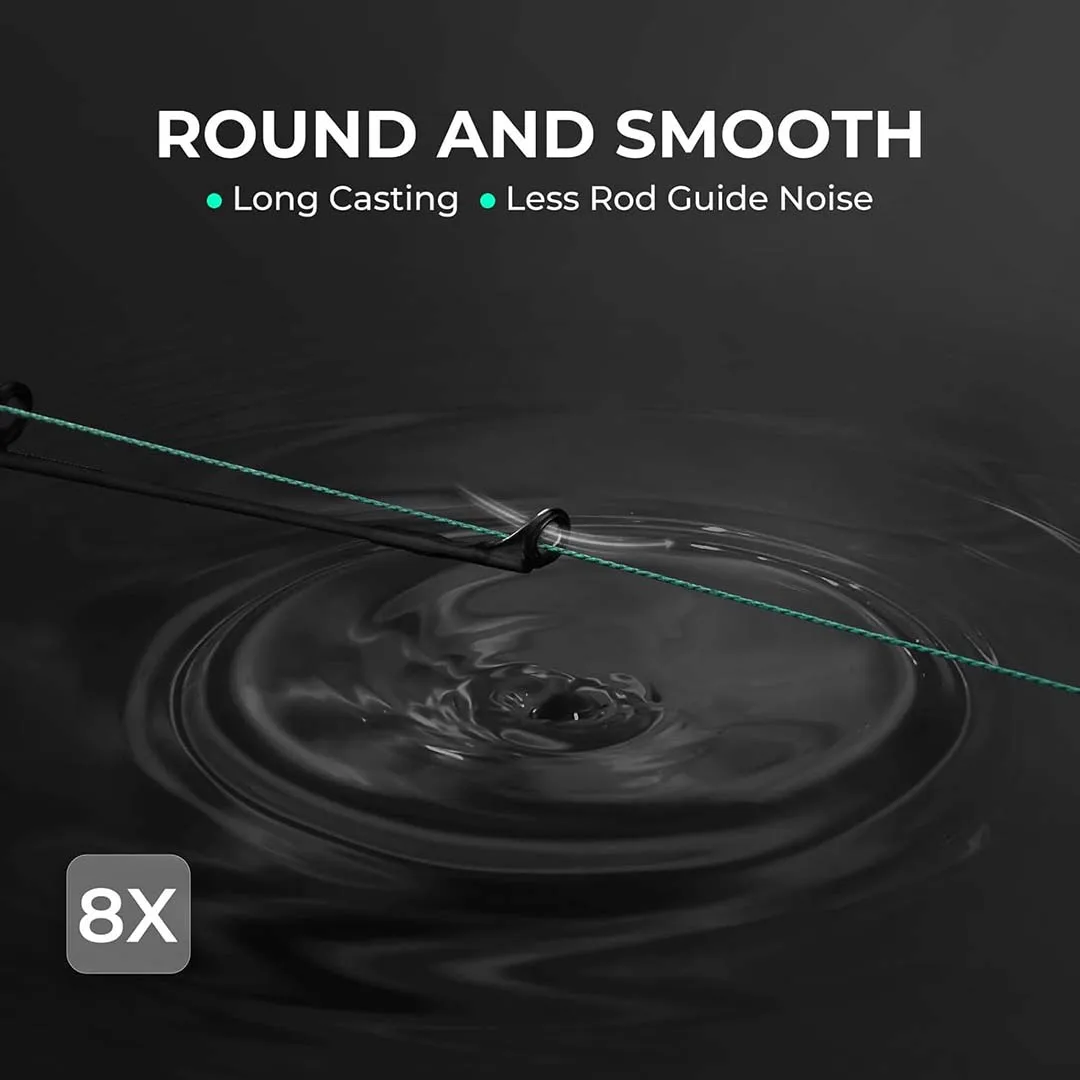 Construcción trenzada X8: utiliza tecnología avanzada de trenzado X8 para una resistencia y durabilidad excepcionales.Esto garantiza que el hilo pueda soportar condiciones de pesca intensas y proporciona una excelente resistencia al desgaste.