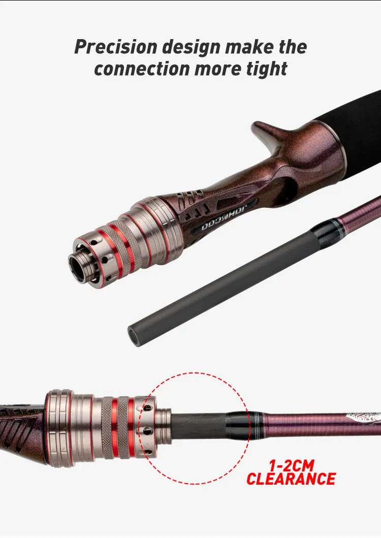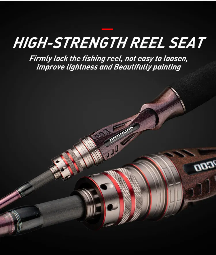 Esta caña de pescar está hecha de fibra de carbono, resistente y duradera.