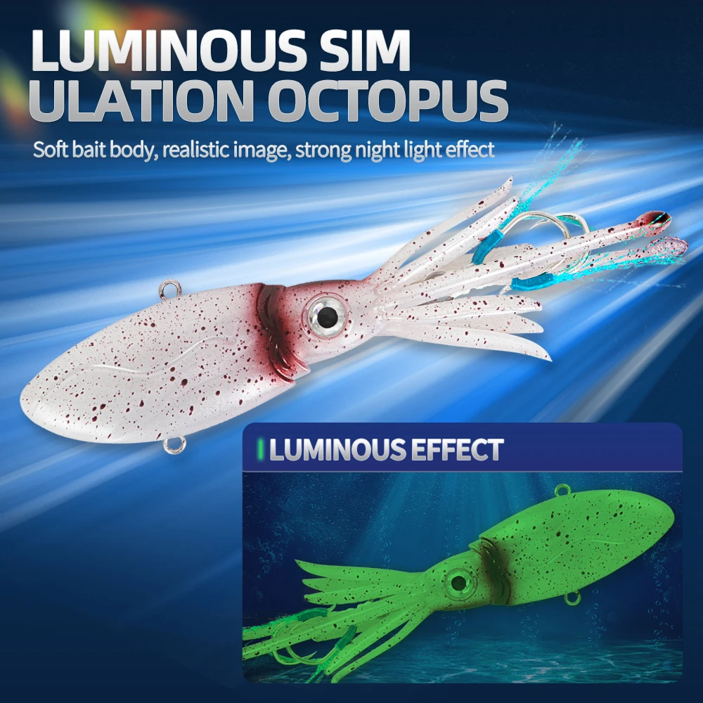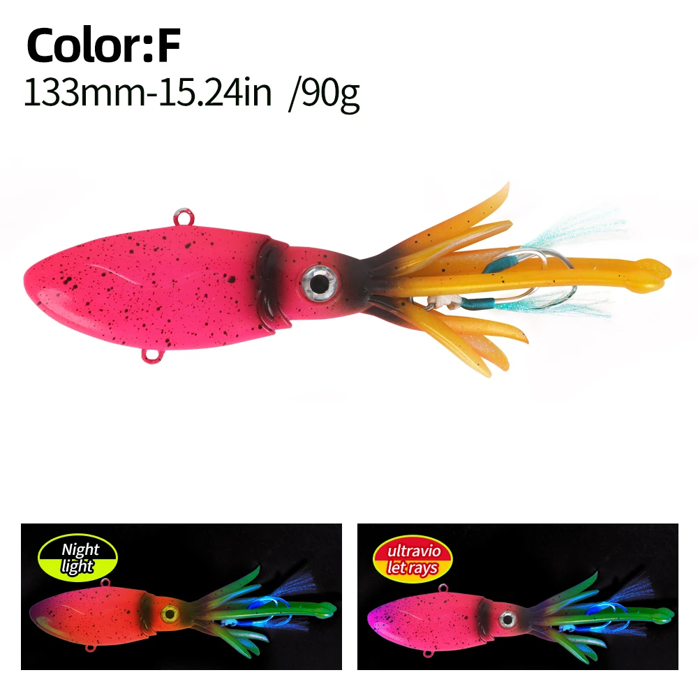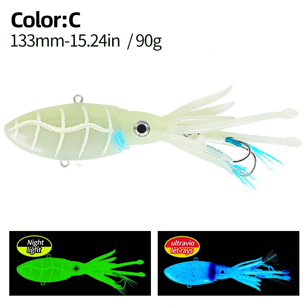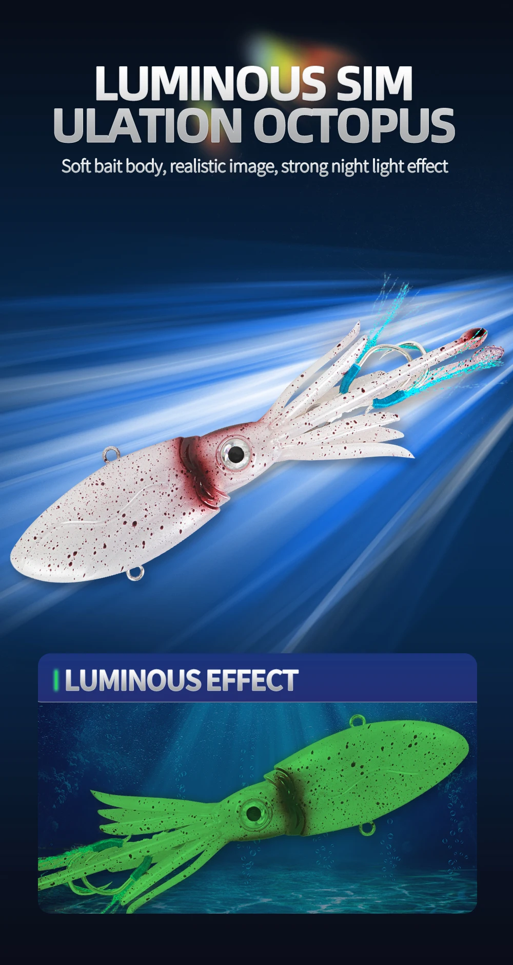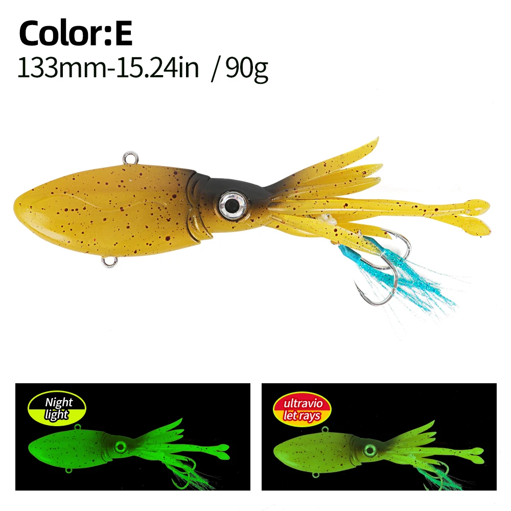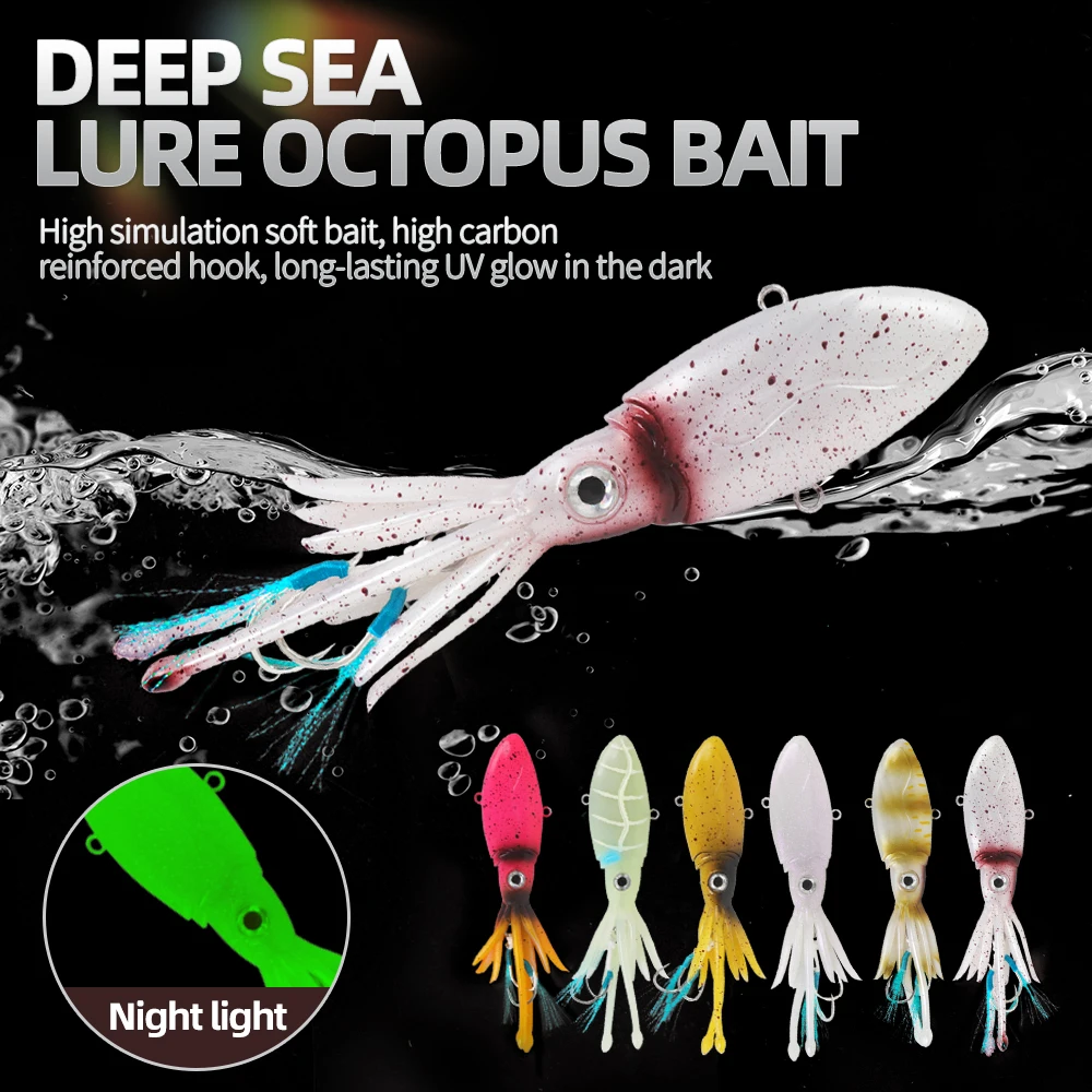 Polvo suave de pesca luminoso UV TPR tiene elasticidad adhesiva con gancho de asistencia 90g/130g pulpo biónico pesca al aire libre