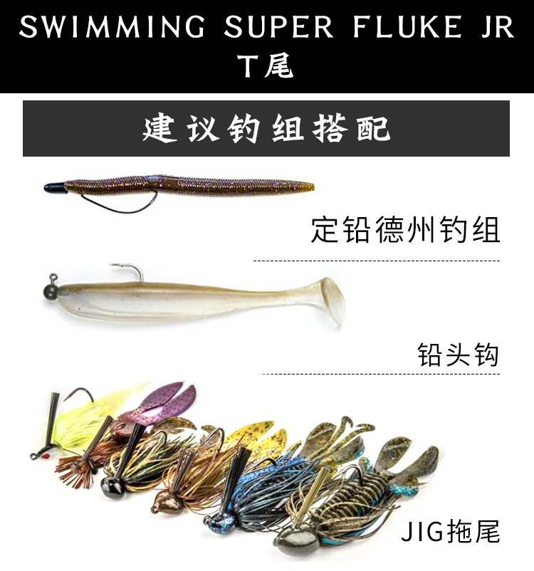 Pescado de cola en T SUPER FLUKE de 4 pulgadas con Zoom importado Original de EE. UU., cebo suave con cola de señuelo