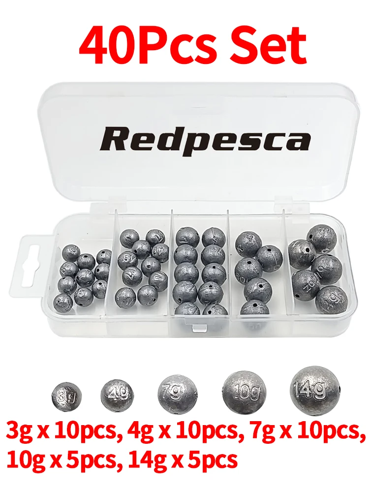 100 unids/40 Uds. Pesos de plomos de pesca de bolas redondas con caja de aparejos, Kit de pesas Cheburashka de plomada de cabeza de plantilla para lubina trucha luccio percha