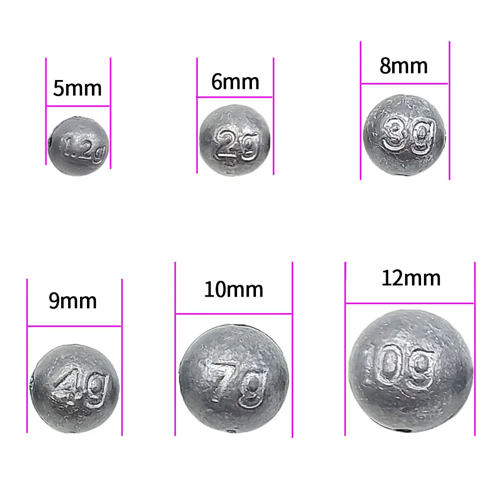 2.FÁCIL DE USAR: Bonitos pesos con un orificio redondo para atar fácilmente.Los pesos de bolas de tiro caído son fáciles de usar para aparejos para caminar de fondo, pesca con curricán, aparejos de texas, aparejos de tiro caído y aparejos de carolina.